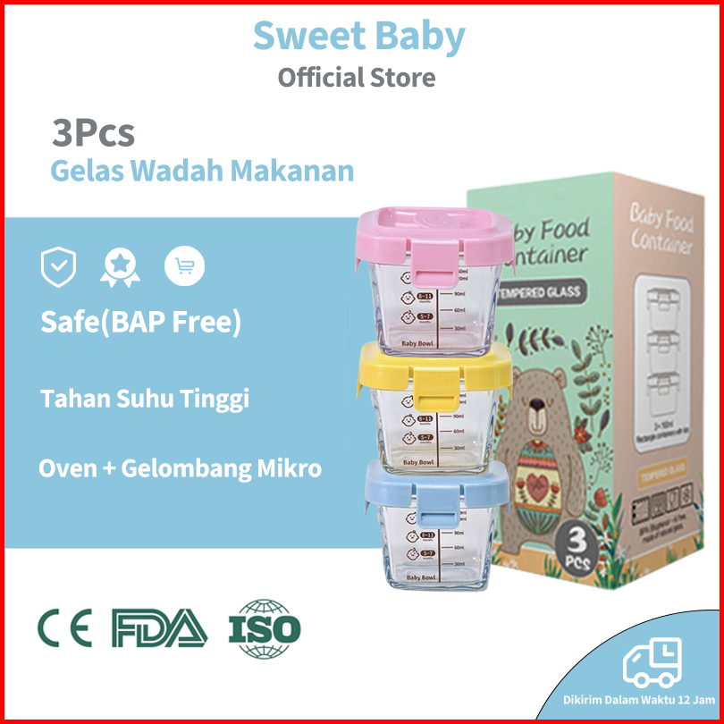 Sweetbaby Tempat Mpasi Kaca 3pcs Wadah Mpasi Kaca Penyimpanan Mpasi Glass Baby Food Container Bpa Free Gfb01