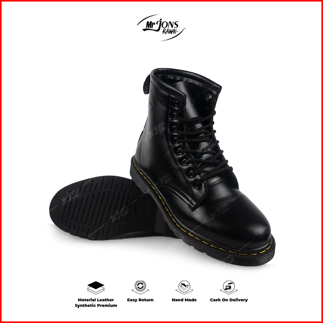 Mr.jonsrawk - Sepatu Formal Boots 8 Hole Pria Wanita Hitam