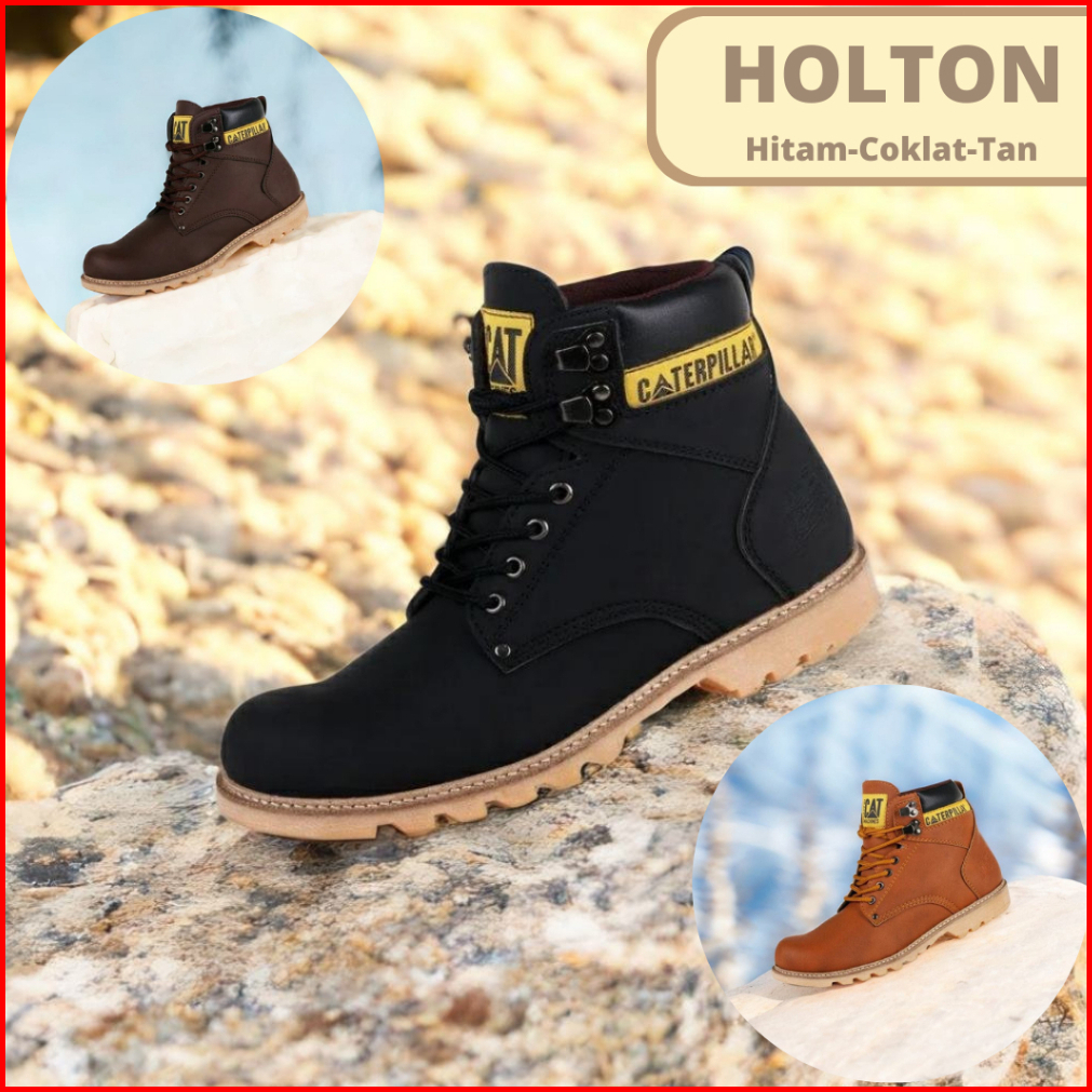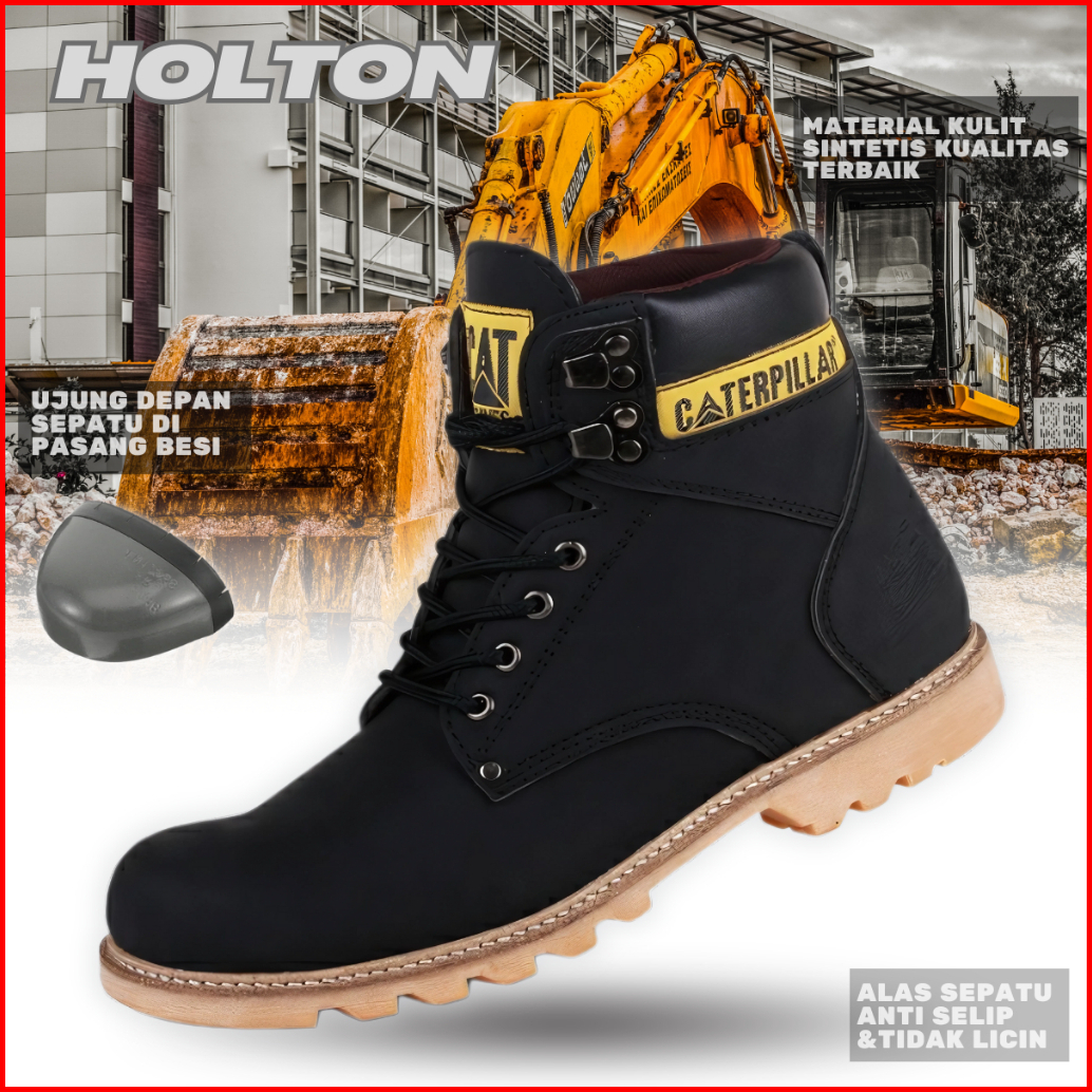 Sepatu Caterpillar Holton Sepatu Safety Boots Ujung Besi Fashion Pria Bikers Turing Outdoor