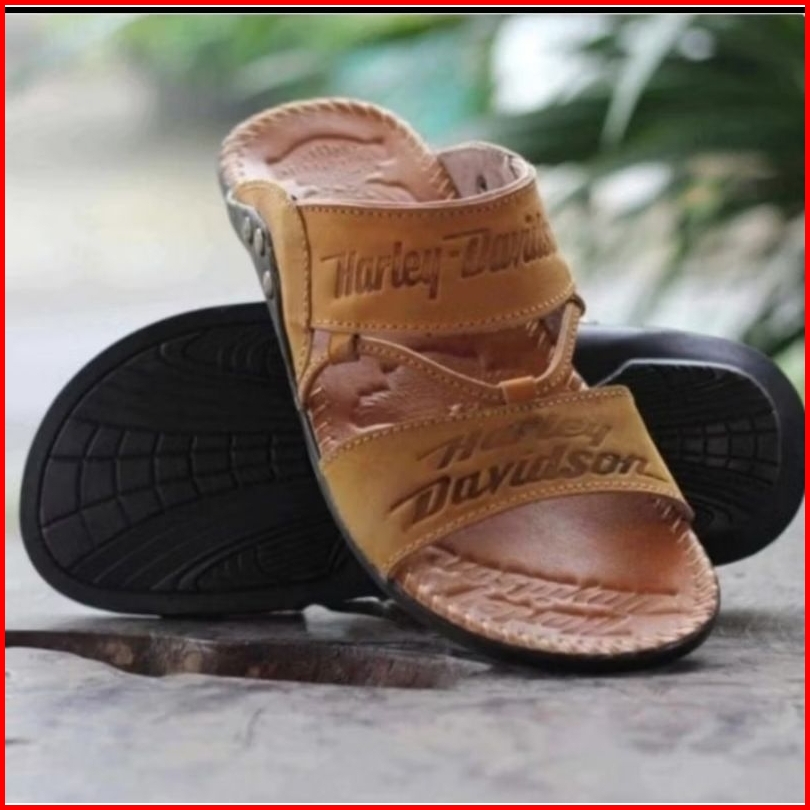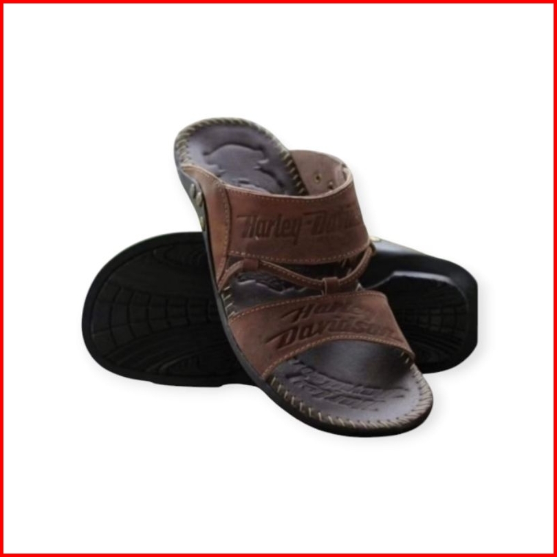 Cuci Gudang Sandal Slop Tali Kulit Sapi Asli Sandal Formal Sandal Casual Pria Harley Davidson