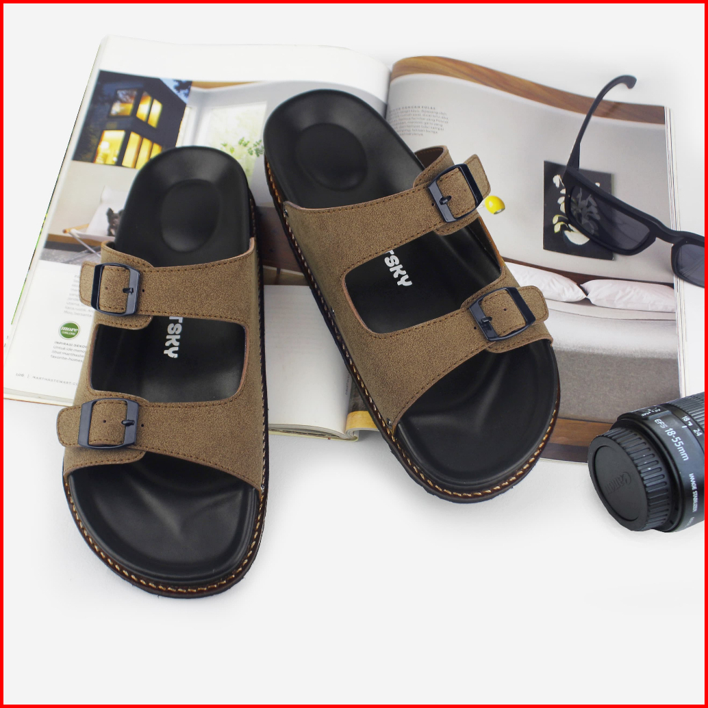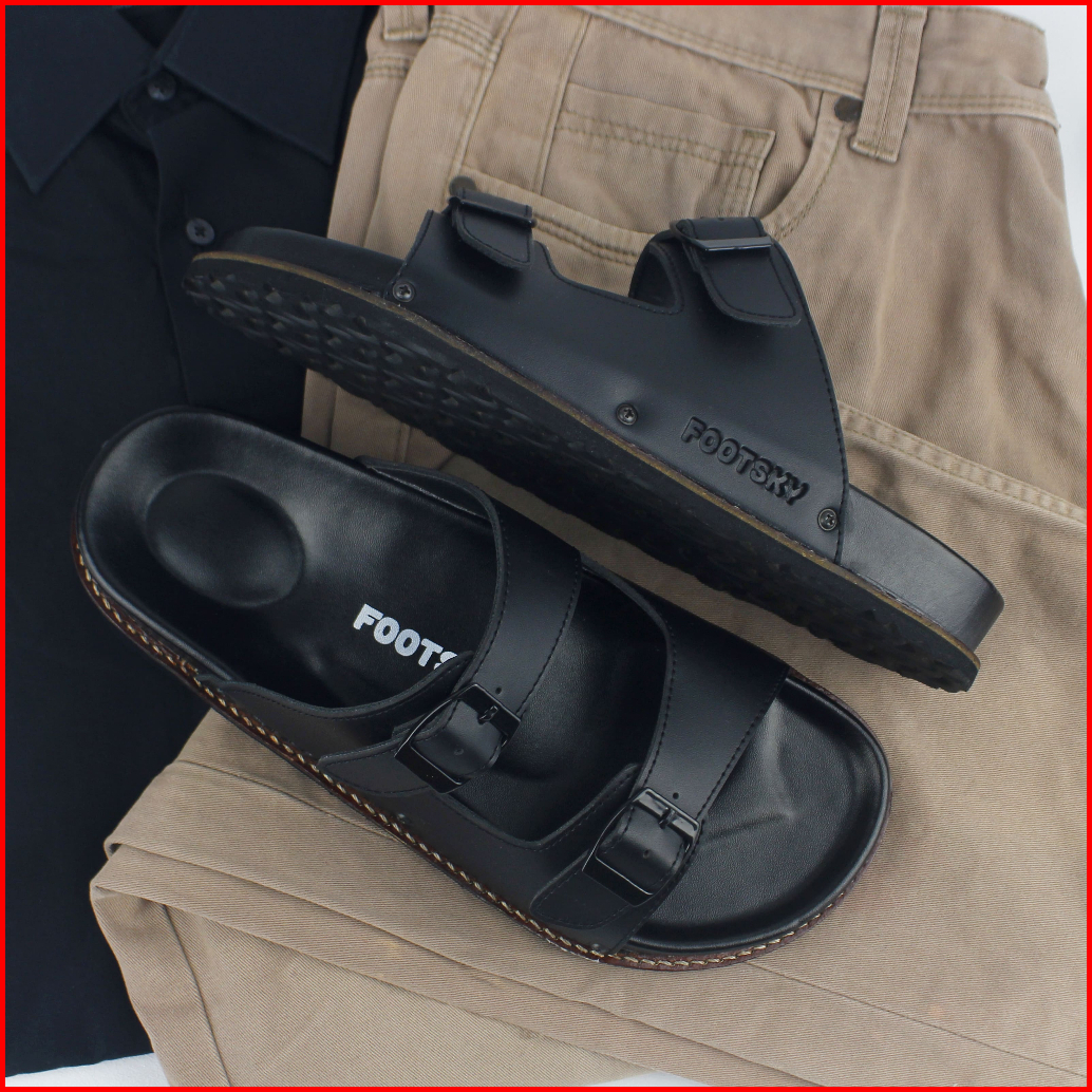 Eight Dream - Shuriken Full Black Sandal Slop Kulit Pria
