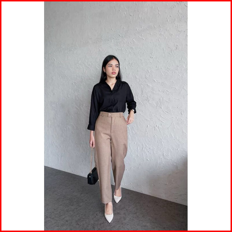 Alexa Pants - Celana Kerja Kantor Wanita Highwaist Bahan Semiwool Jatuh Nyaman