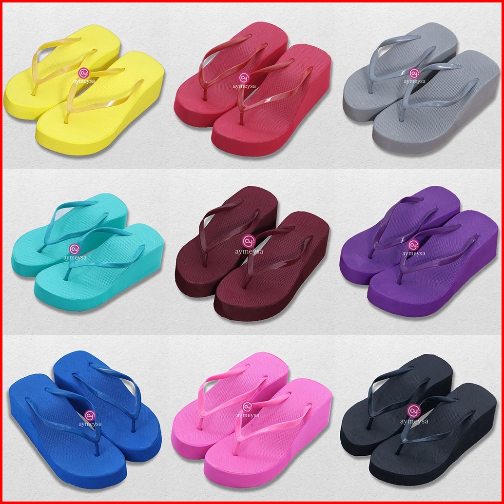 Sandal Wedges Spon Colorful Jepit Polos Kualitas Super