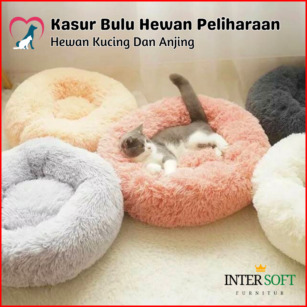 Pet Bed Kasur Kucing Dan Anjing Bulu Rasfur Premium Tempat Tidur Hewan Peliharaan Bulat Lembut Halus