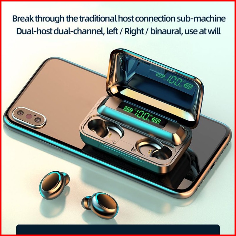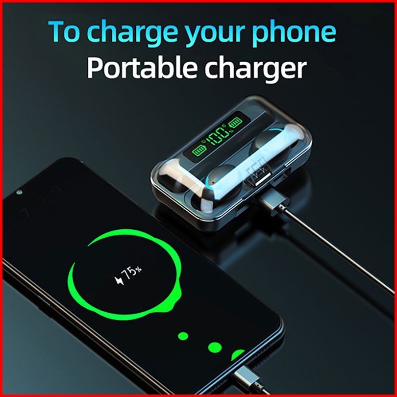 Headset Earphone Bluetooth Tws F9-5 Smart Display With Powerbank