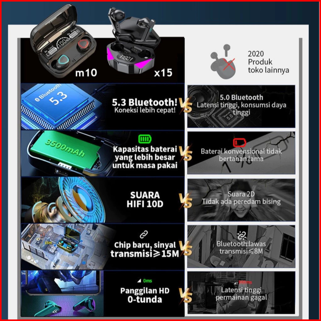 Hadiah Gratism10 Tws Headset Bluetooth Wireless 5.3 Kualitas Suara Hd Earphone Kotak Pengisi Daya Headset Tahan Power Ba