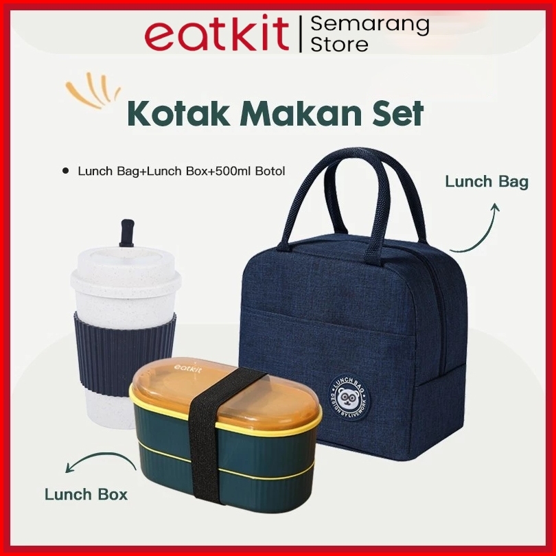 Eatkit 3in1 Kotak Makan Set Lunch Box I Tempat Kotak Makan I Lunch Box Wheatstraw