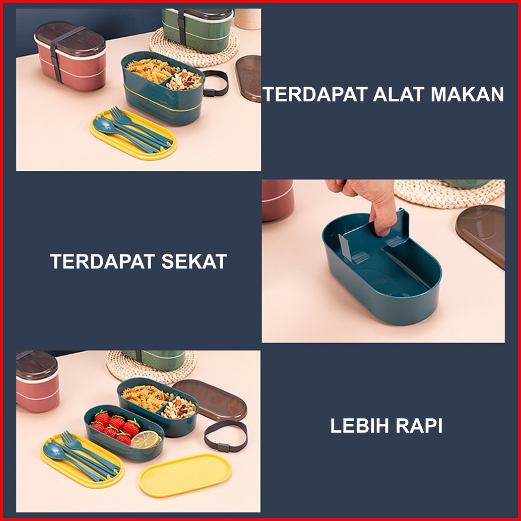 Kotak Makan Siang 2 Lapis Lunch Box Tempat Bekal Ala Jepang Makan Siang Anak Dan Dewasa Sudah Set Alat Makan