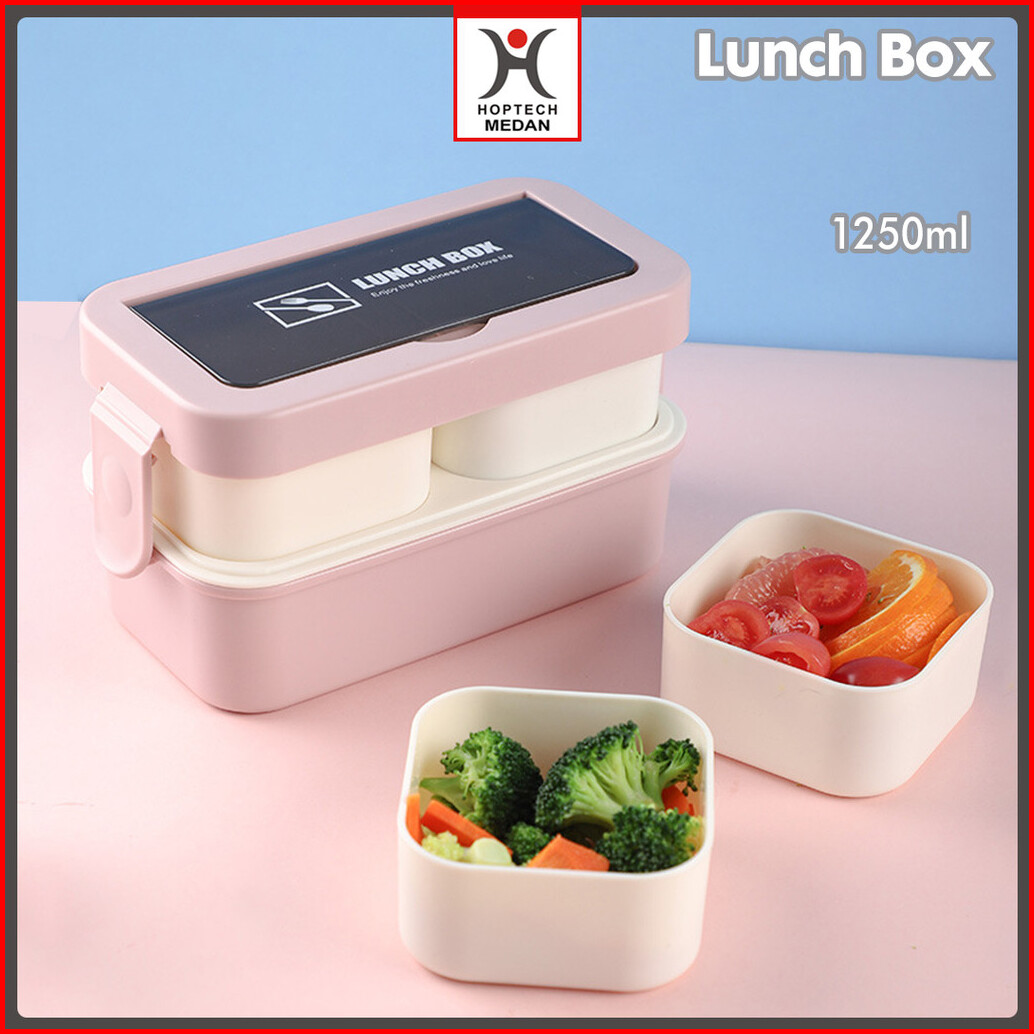 Hoptech - Lunch Box Set 2 Tingkat 1250ml Sauce Cup Anti Tumpah Free Sendok Garpu Kotak Bekal Portable Medan Ready Stock