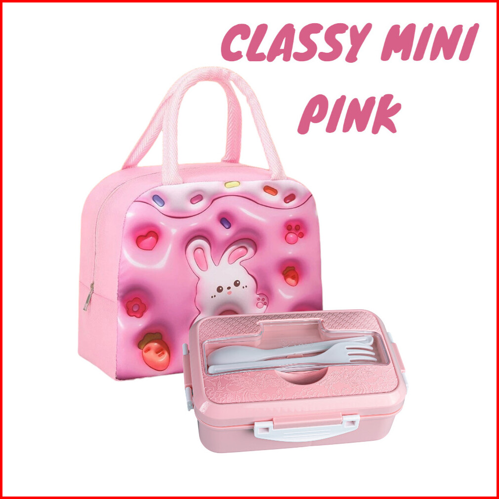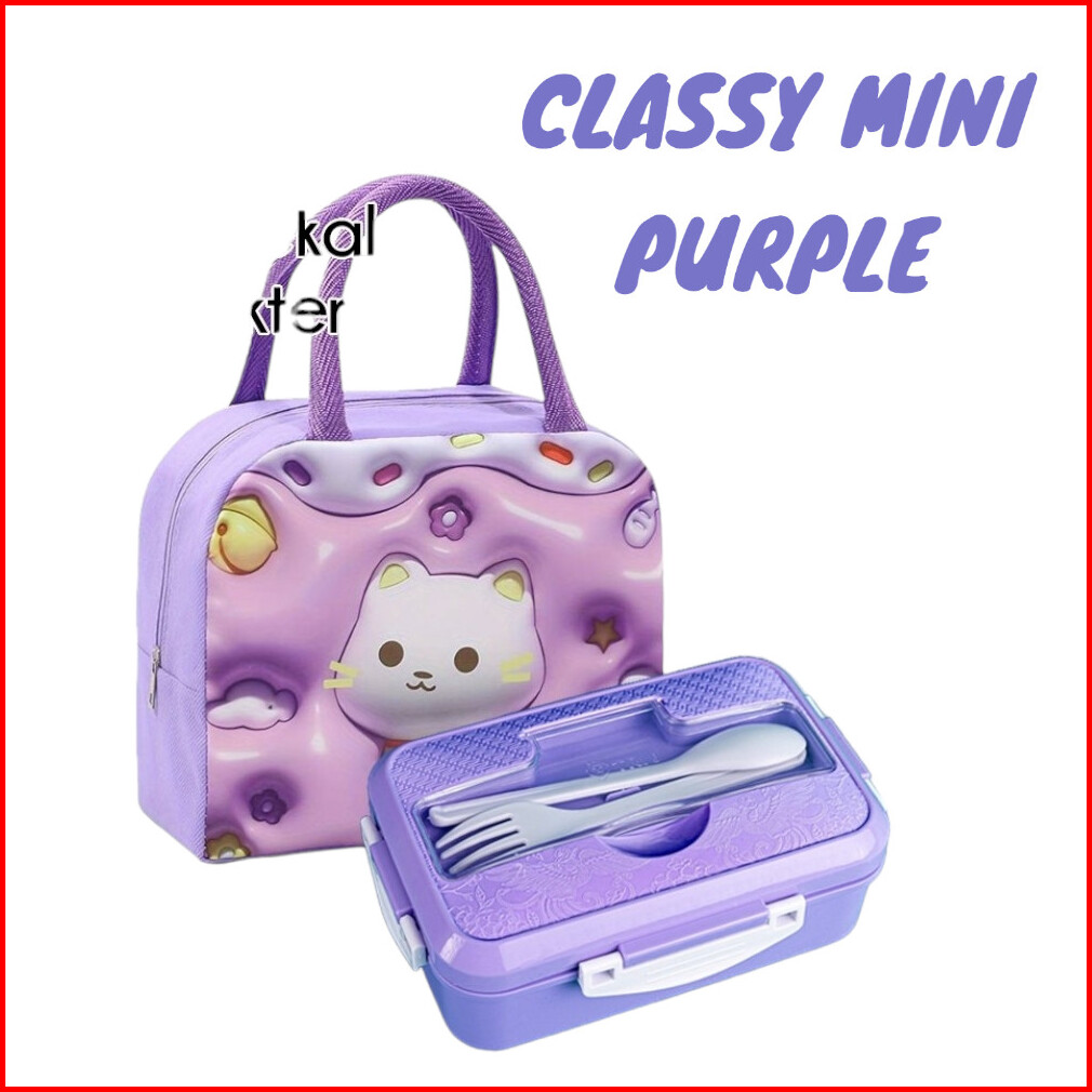 Classy Mini Kotak Makan Lunch Box Set Paket Sendok Garpu Tas Bekal Makan Anak Sekolah Dewasa