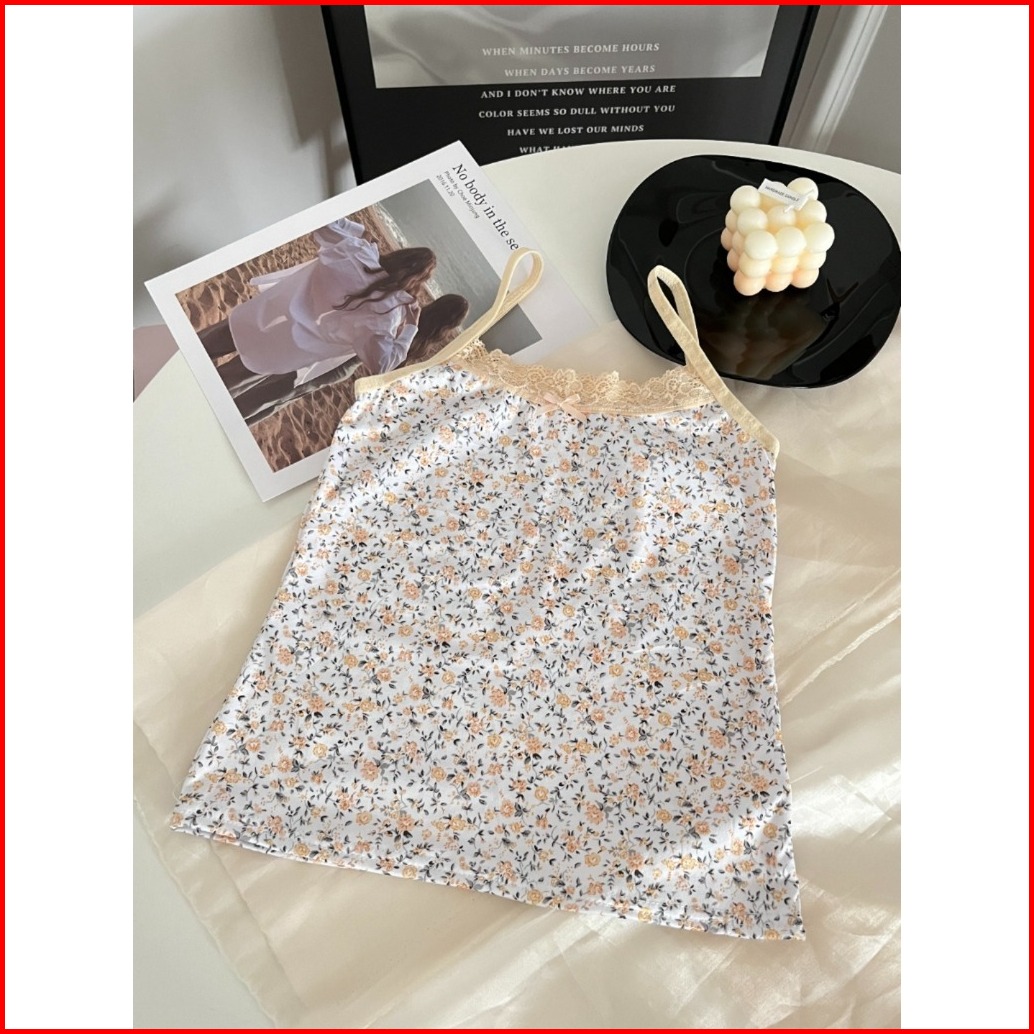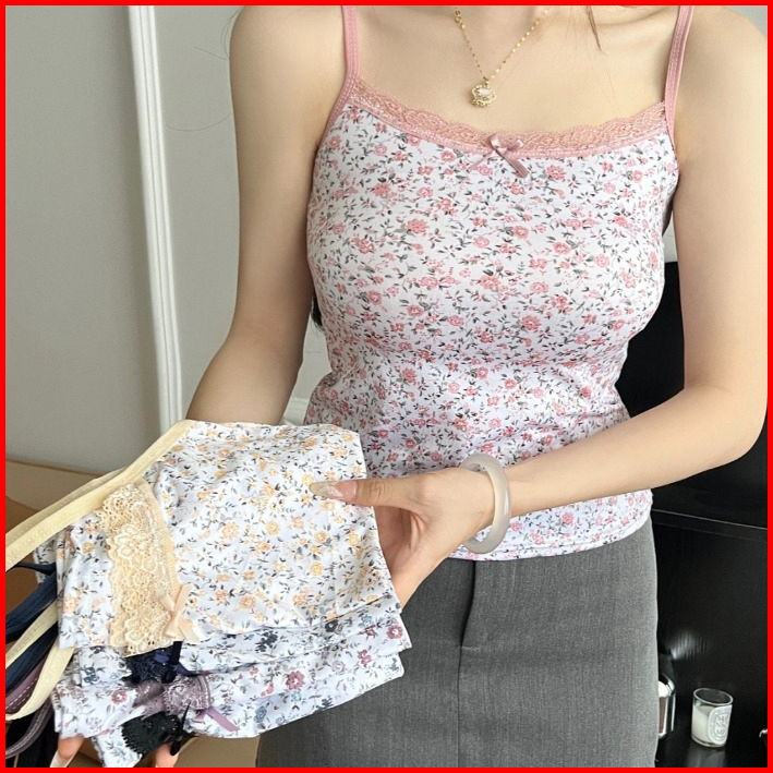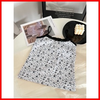 Clickbra Br1734 Baju Tanktop Fashion Wanita Corak Bunga Elastis Atasan Sexy Square Knit Korea