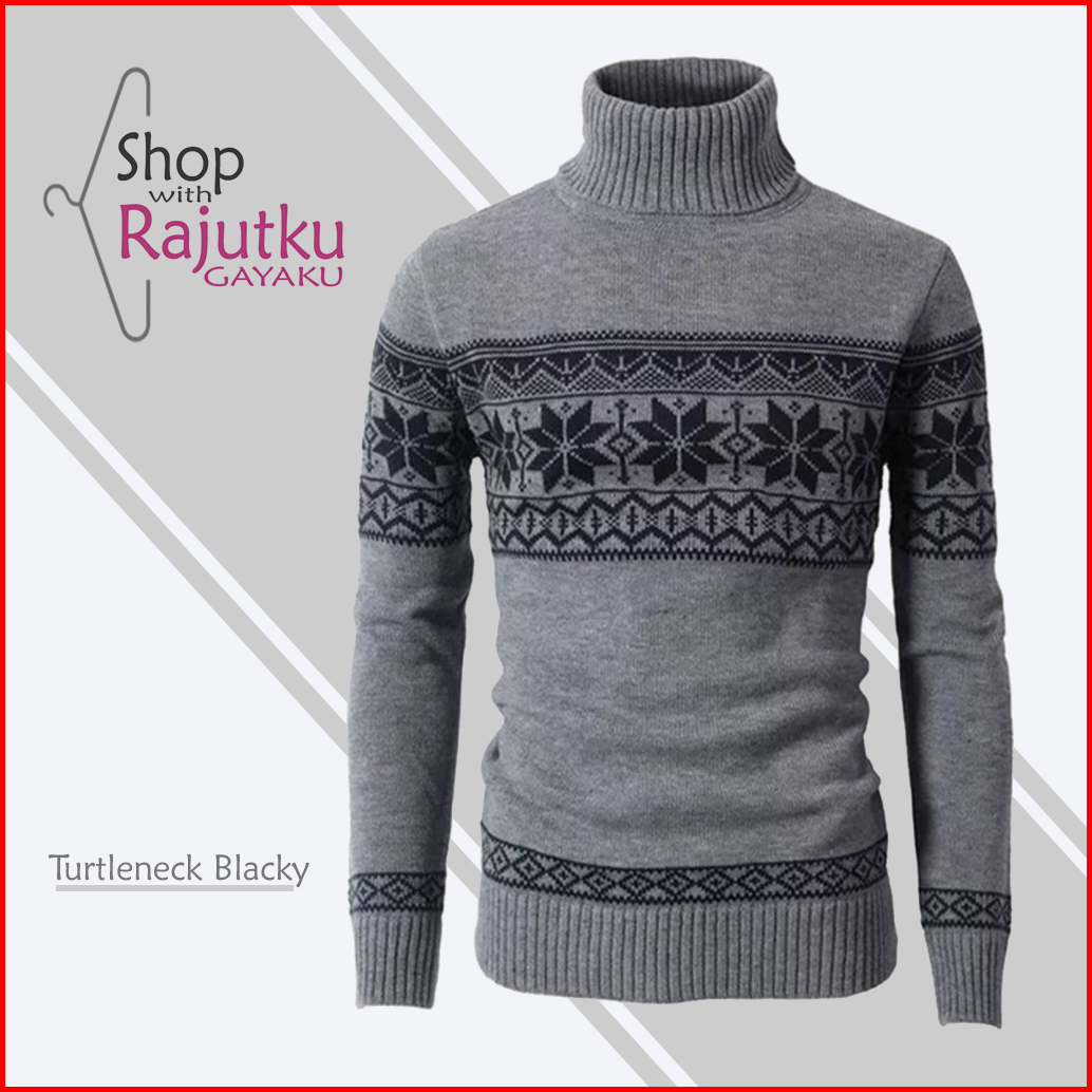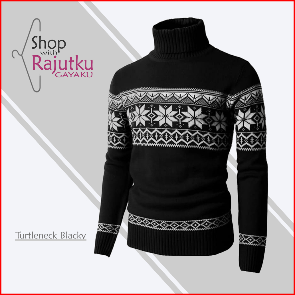 Sweater Rajut Kerah Tinggi Pria Keren Terbaru 2023 Tebal Sweter Rajut Cowok Korean Style Motif Blacky
