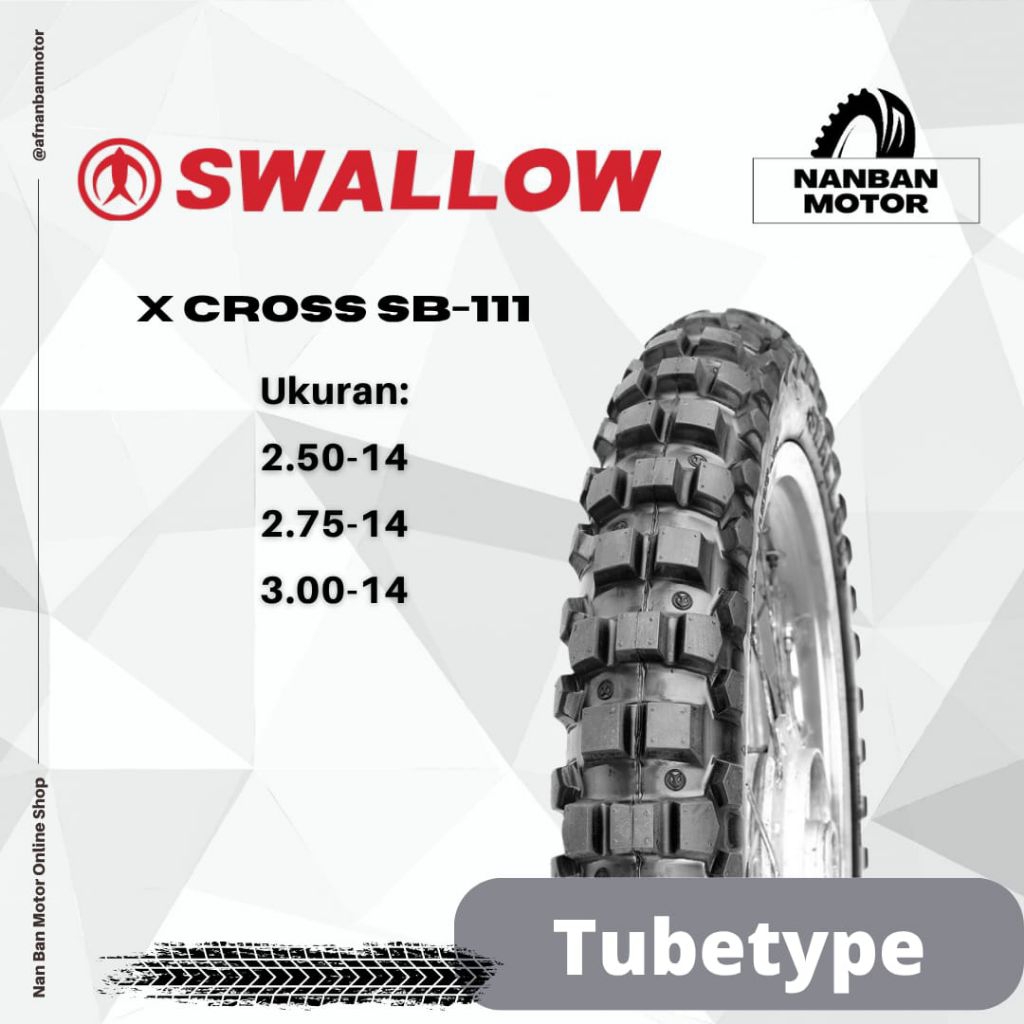 Ban Motor Swallow Sb-111 X-Cross Ukuran 250-14, 275-14 & 300-14 Ban Tubetype Harus Pakai Ban Dalam Ban Trail