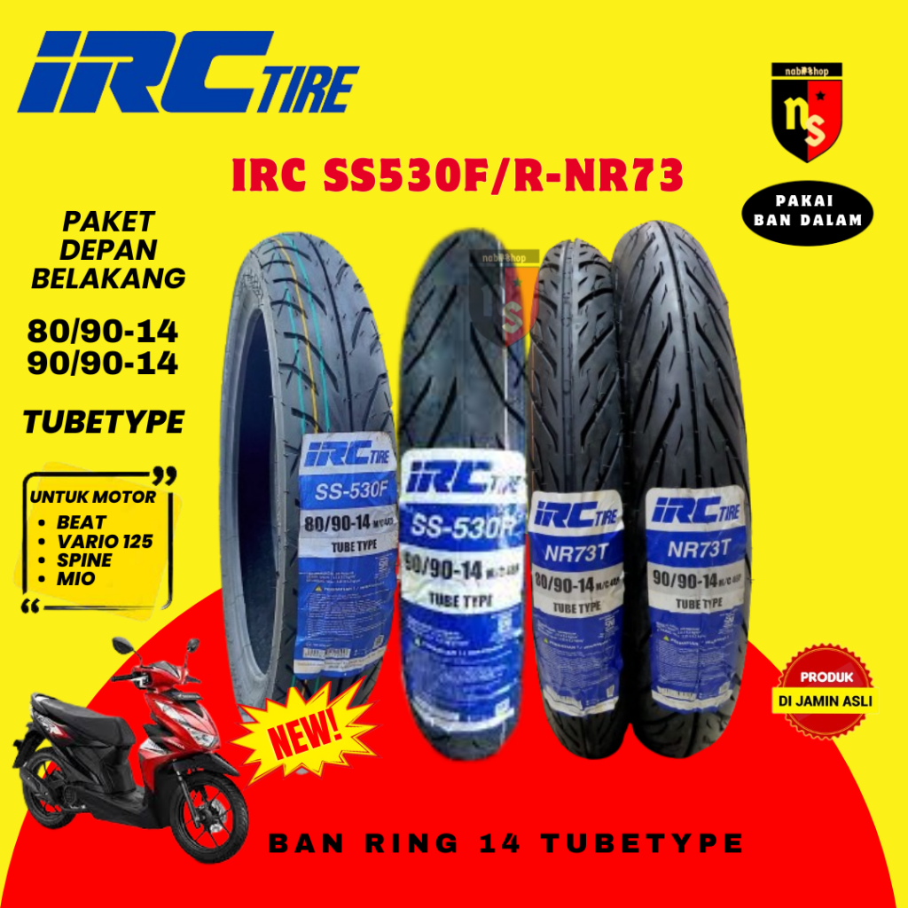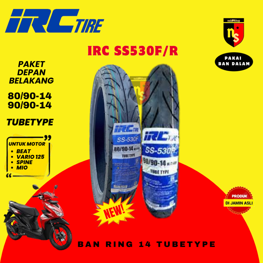 Paket Ban Motor Irc Ss 530 80/90 Dan 90/90 Ring 14 Bukan Tubeles (Tubetype) Ban Motor Depan Belakang Beat Vario Mio Fino