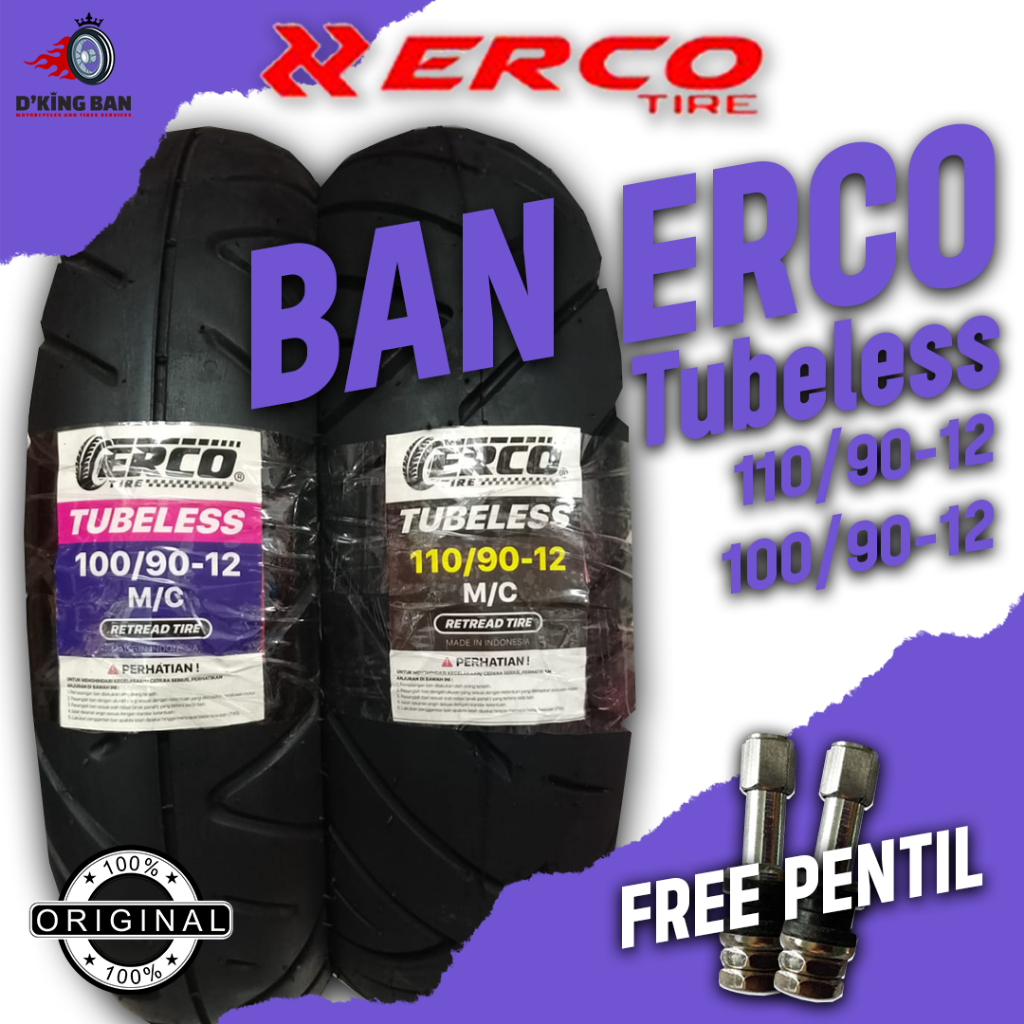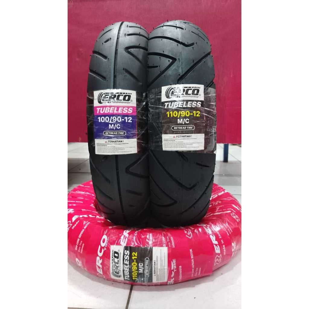 Sepaket Ban Motor Matic Erco Ring 12 Tubeless 100/90-12 Dan 110/90-12