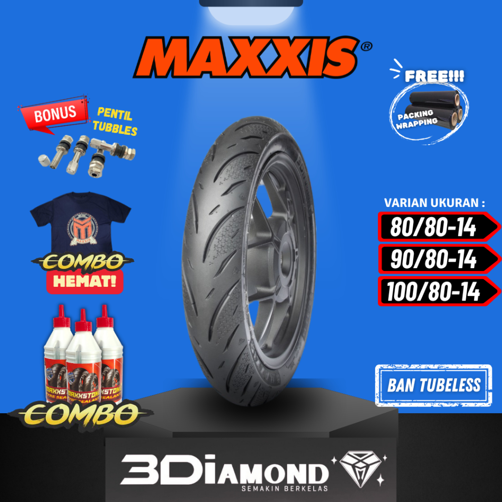 Ban Maxxis Diamond Ma-3Di Tubeless Ring 14 ( 80/80-14 / 90/80-14 / 100/80-14 ) Ban Motor Matic Vario / Beat / N