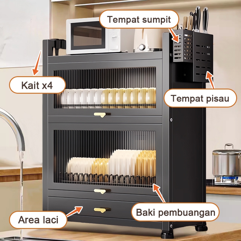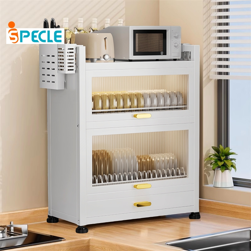 Ispecle 2/3 Susun Rak Piring Tertutup Anti Debu Rak Lemari Piring Dengan Laci Rak Dapur Serbaguna