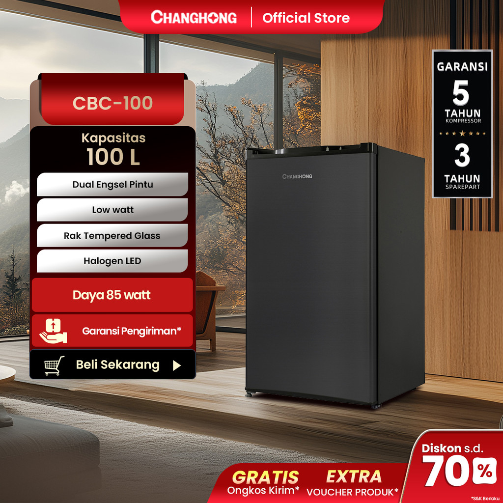 Changhong Kulkas 1 Pintu Low Wat Lemari Es Kapasitas 100 Liter – Cbc100 Garansi 5 Tahun