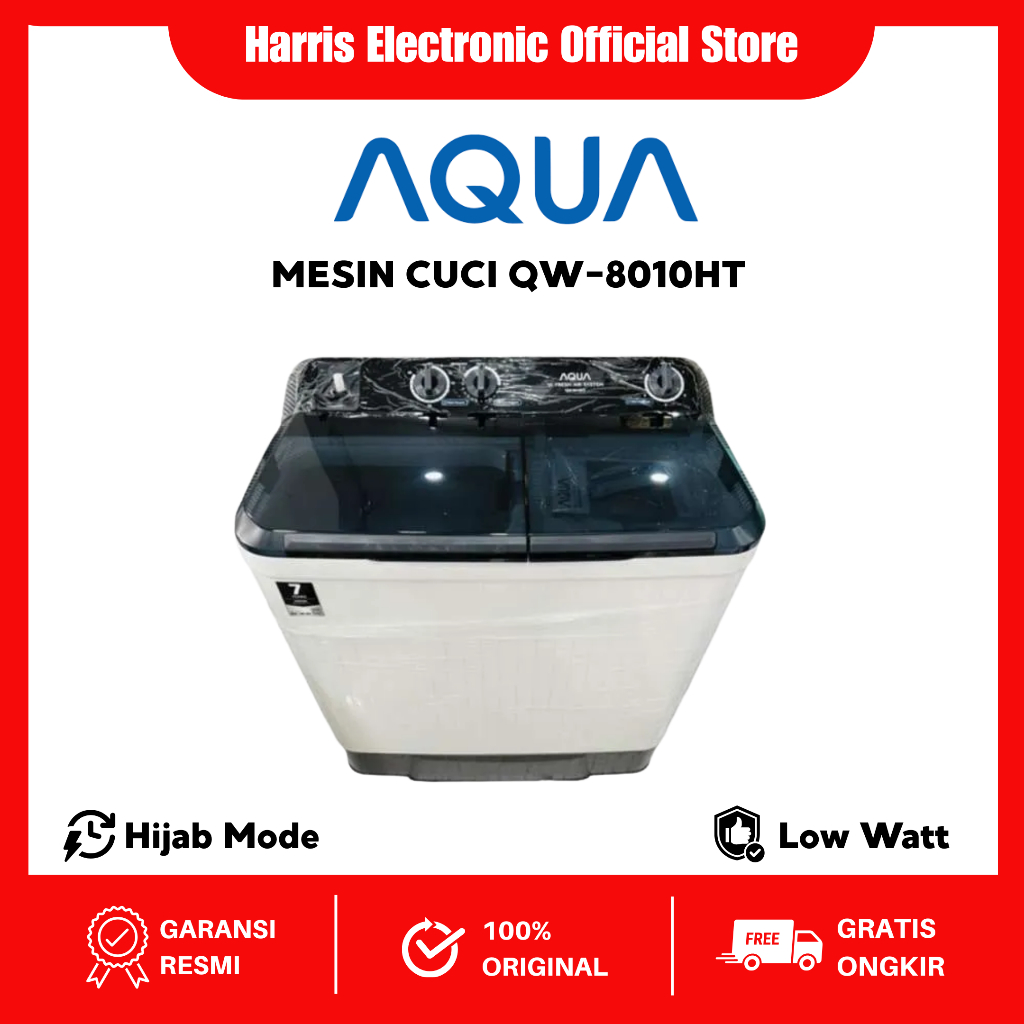 Mesin Cuci 2 Tabung Aqua Aqw 8010 Ht Hijab Series Tutup Transparan 8 Kg / Aqw-8010Ht