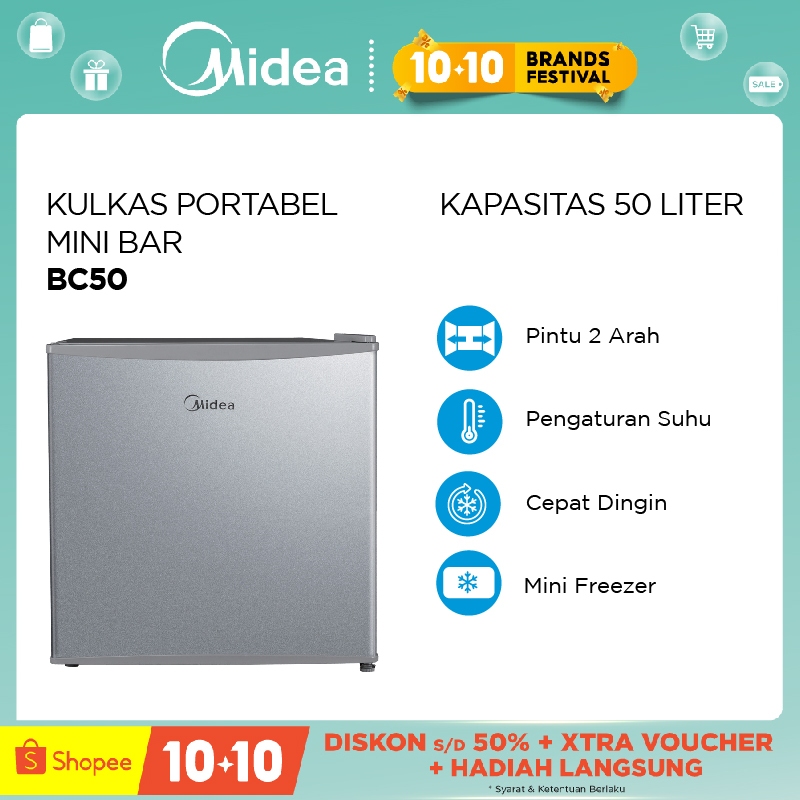 Midea Kulkas Mini Portable Mdrd86Fgg50Id 50L