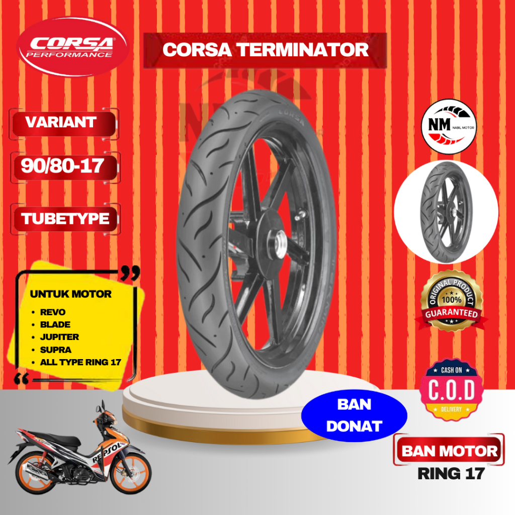 Ban Motor Ring 17 Corsa Terminator 80/90-17 Tubetype (Bukan Tubeles) Revo Supra Blade Kharisma Kirana Jupiter Shogun Sma