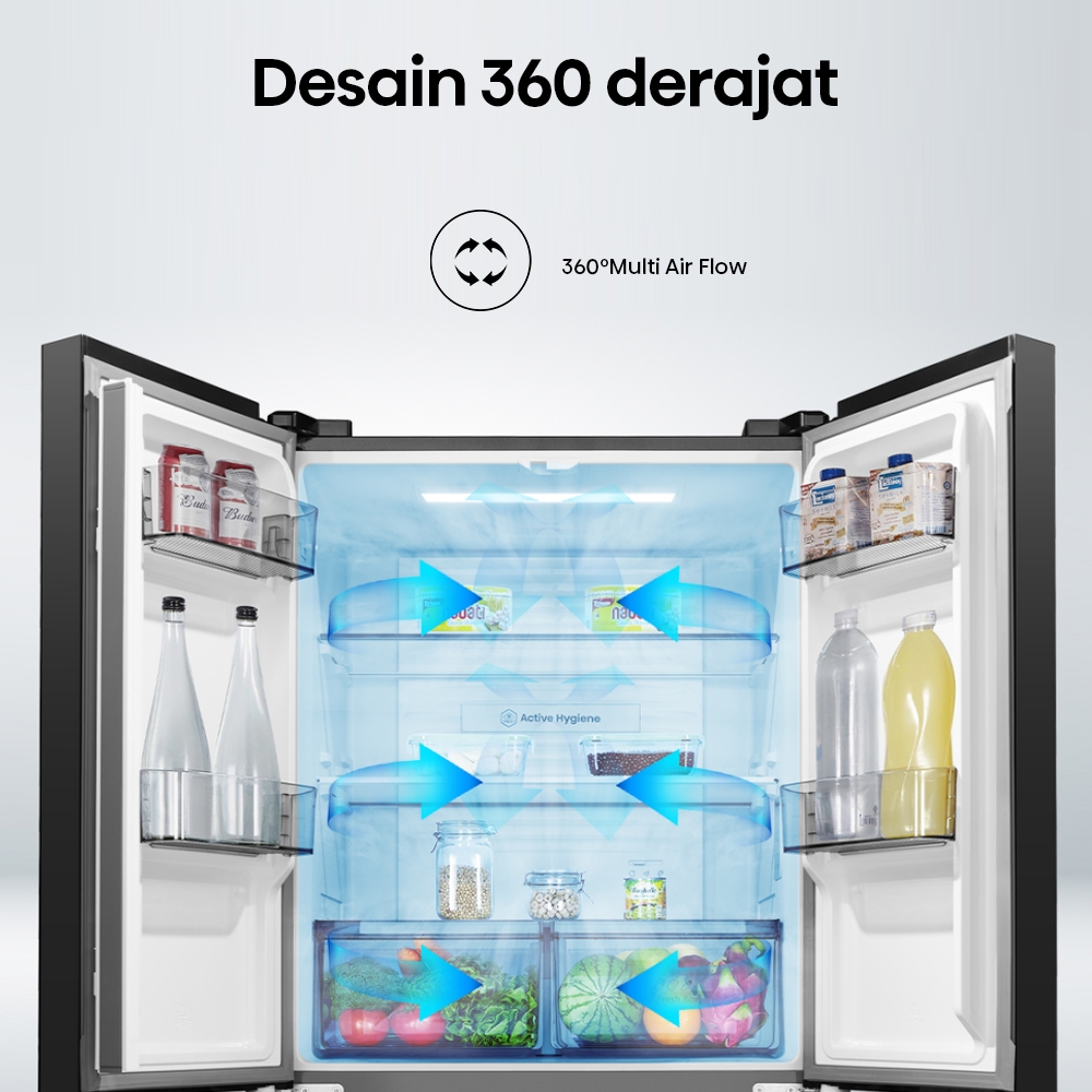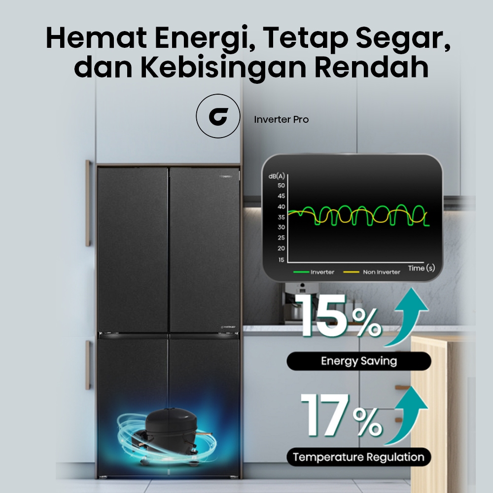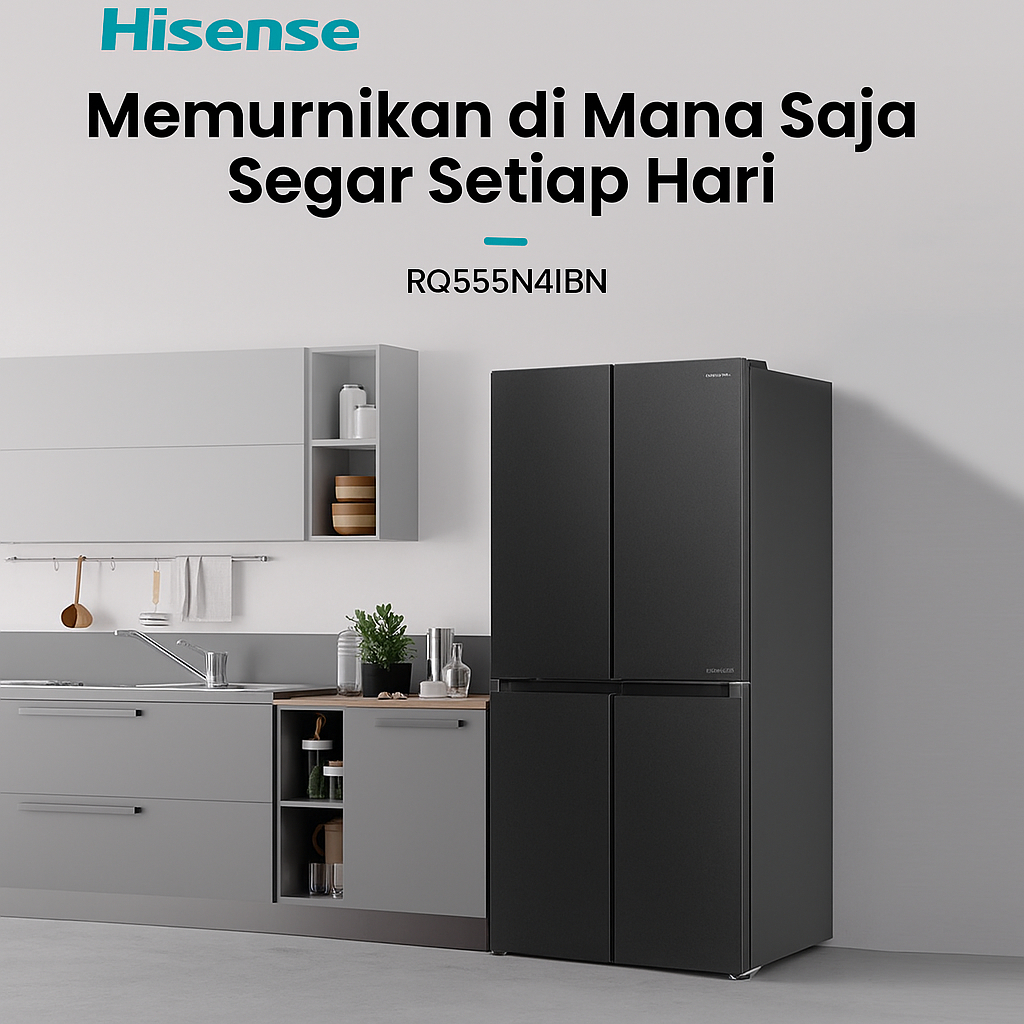 Hisense Kulkas Rq555N4Ibn Refrigerator 4 Pintu Kapasitas 468L Warna Hitam Inverter Pro 360 Derajat Multi Air Flow All Zo