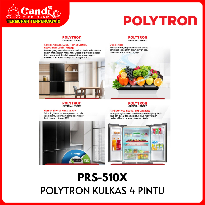 Polytron Kulkas 4 Pintu Kapasitas 480 Liter New Belleza Inverter Prs-510X