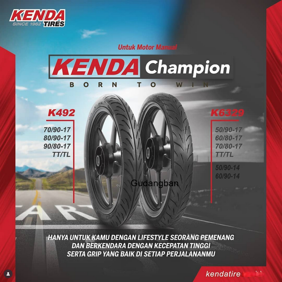 ( K6329 - Ring 14 ) Tubetype Kenda Champion Ban Balap Soft Non-Tubeless -Cek Varian 50 Atau 60 90 14