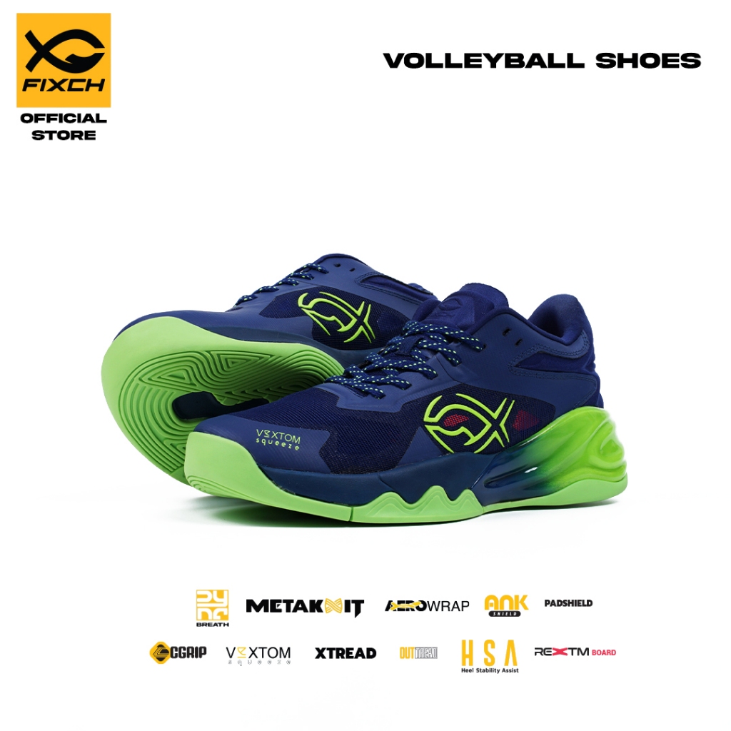 Fixch - Lunatic Alpha Sepatu Voli Low Cut Dark Navy/Dark Navy/Lime Green