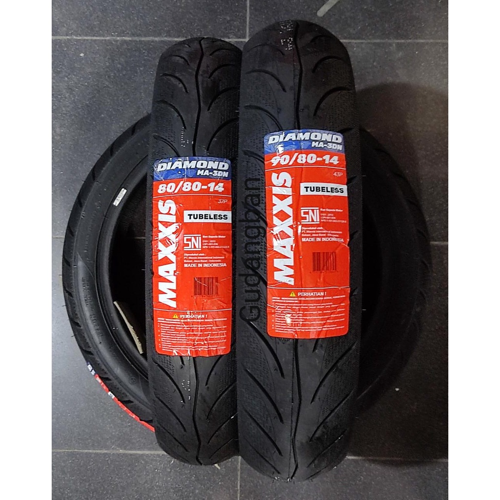 ( Paket 2 Ban ) Diamond 80 80 14 Dan 80 90/ 90 80/ 100 80 Thn 2025 Maxxis Tubeless Ma3Dn Free Pentil
