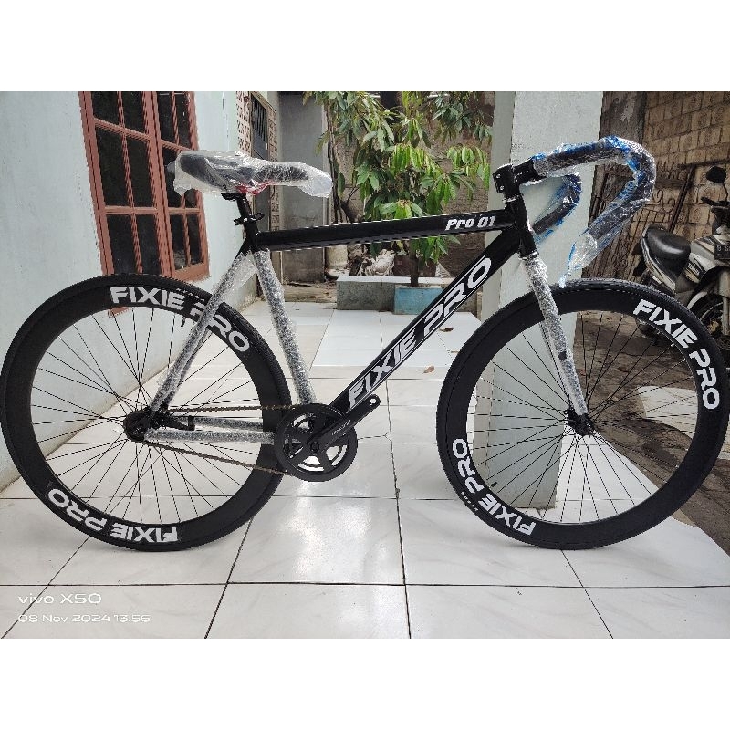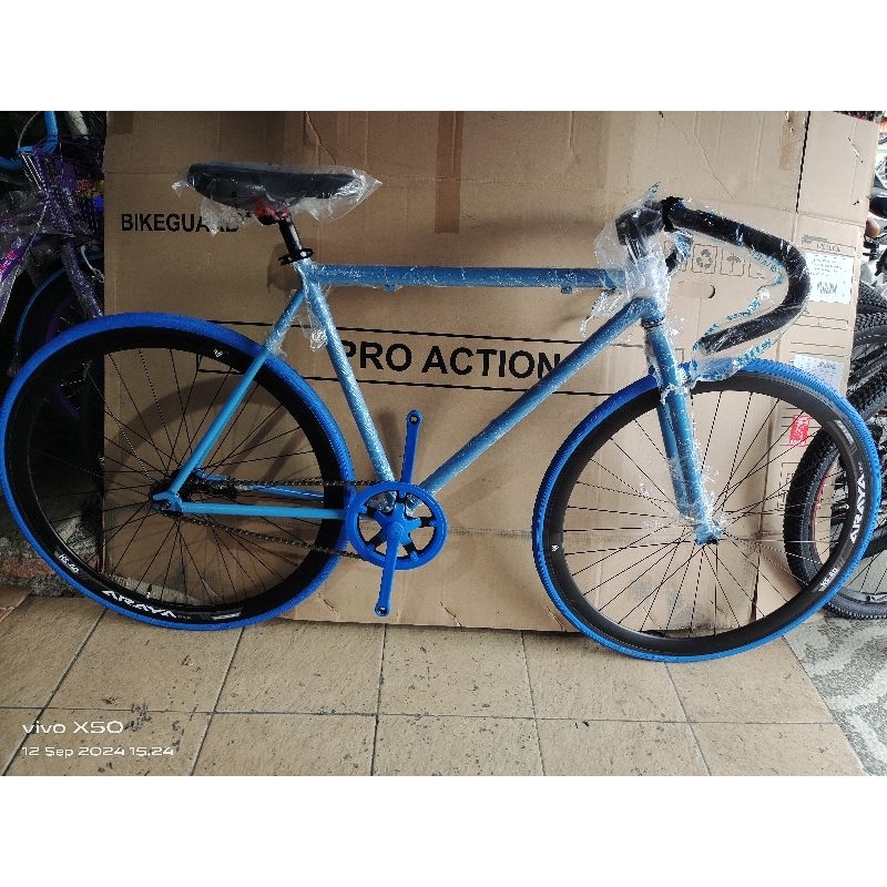 Sepeda Fixie 700C Frame Lokal Velk Platinum 5Cm,Dan Araya Ks40, Velk Pacific 4Cm Rem Terpedo Stang Balap