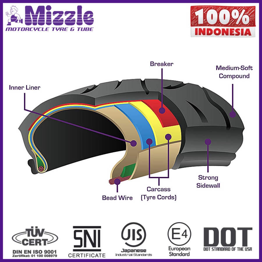 Ban Luar Mizzle Mz028 60/90-14 70/80-14 70/90-14 80/8-14 90/80-14 Tubetype Ring 14