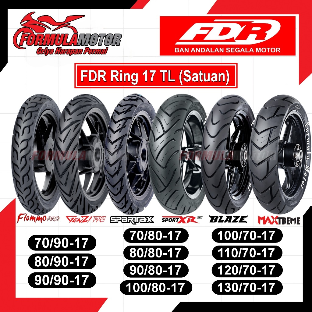 [Fdr Ring 17 Tubeless] Ban Tubles Motor Bebek/Sport/Moge/Super Moto (Flemmo Pro, Genzi Pro, Spartax, Sport Xr Evo, Ukura