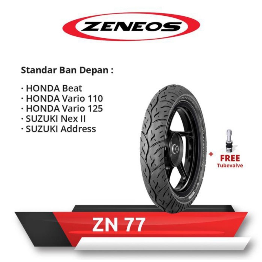(Free Pentil Besi) Paket Ban Motor Merk Zeneos Zn77 80/90-14 Dan 90/90-14 , 10090-12 Dan 110/90-12 Tubeless