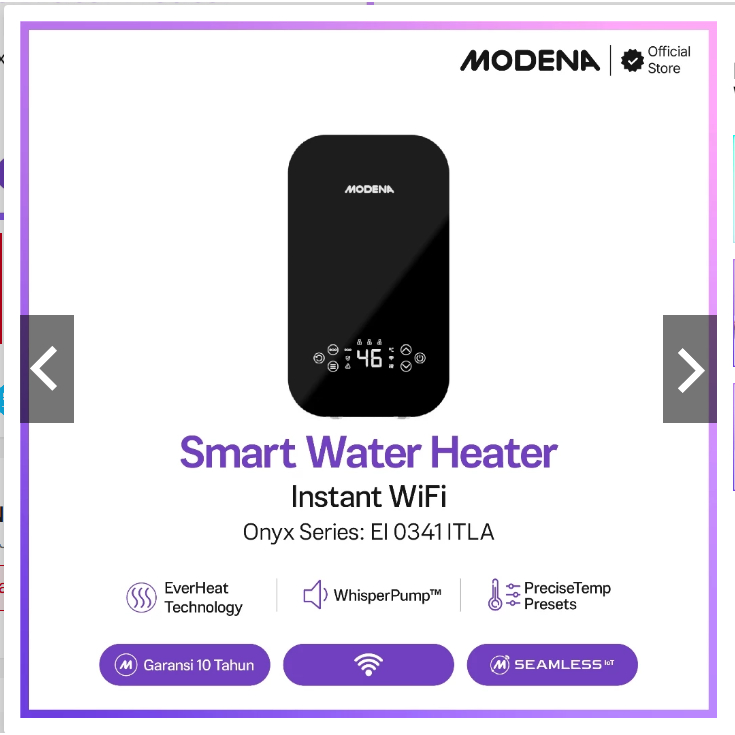 Modena Ei 0341 Itla Seamless Smart Water Heater Instant Black Onyx