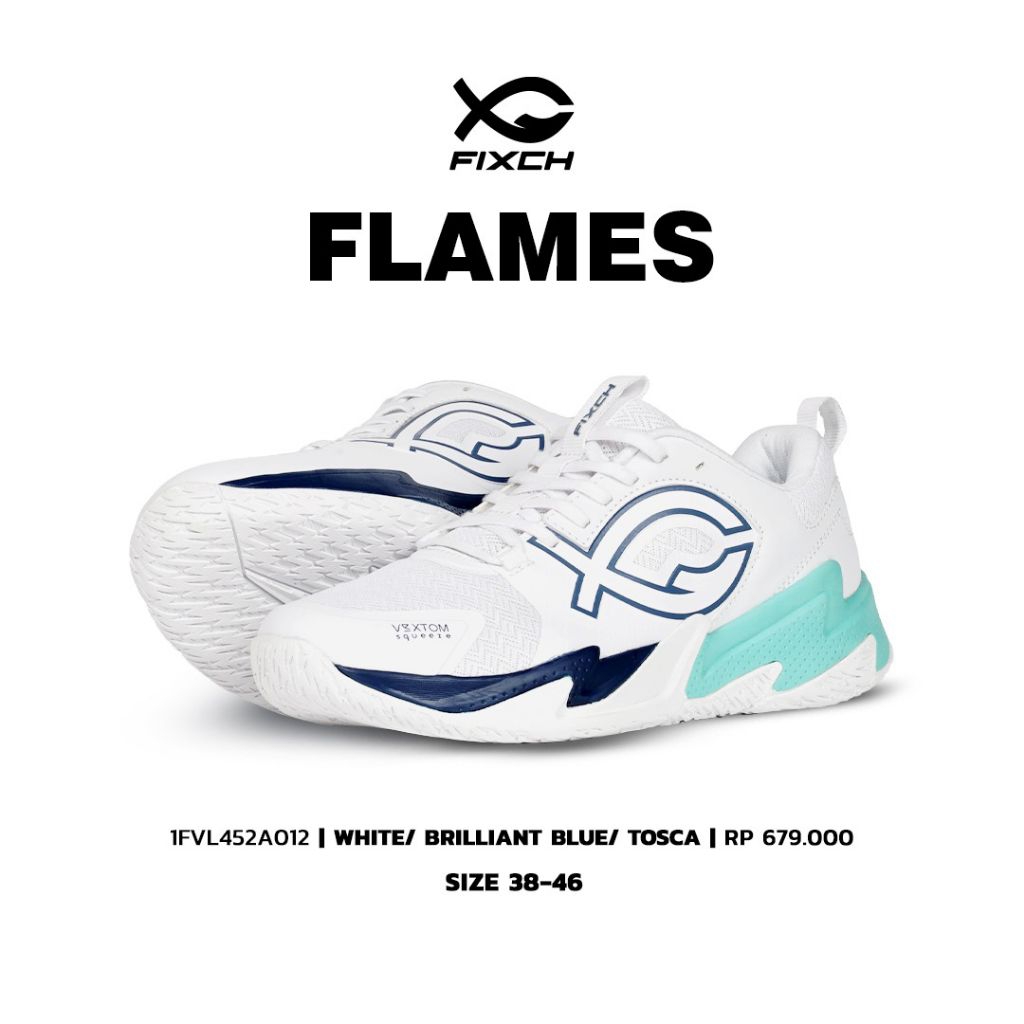Fixch Sepatu Voli/Volley Original Flames - White Brilliant Blue Tosca/Fixch Sepatu Voli Terlaris Original/Sepatu Voli Fi