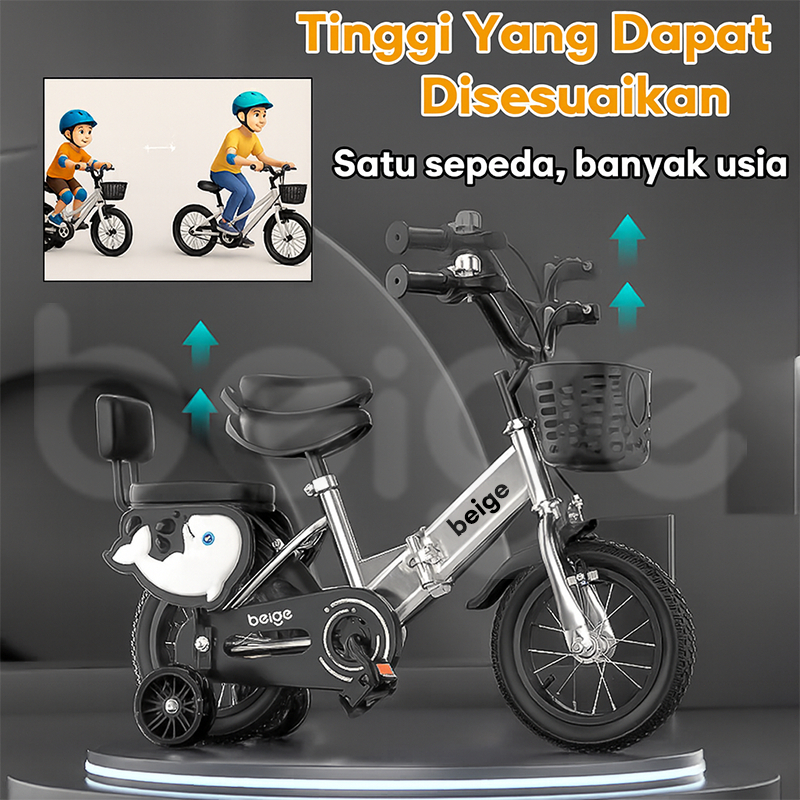 Beige Sepeda Anak/Sepeda Lipat/12&14&16/Dengan Roda Bantu Usia 2-8 Tahun