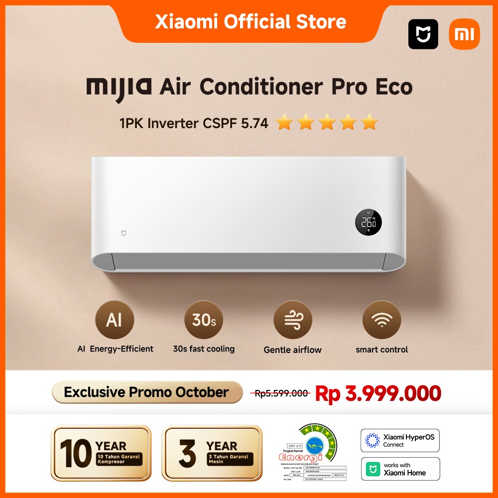 Xiaomi Mijia Ac Air Conditioner 1 Pk Inverter Pro Eco 5-Star | Low Watt | Smart Control | Quick Cooling [Off