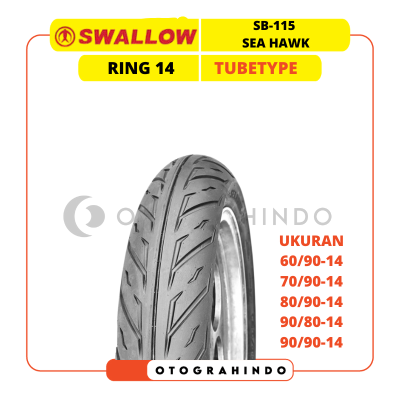 Ban Luar Motor Swallow Sb-115 Sea Hawk Ring 14 Non Tubeless Ukuran 60/90 70/90 80/90 90/80 90/90 Tubetype Motor Bebek