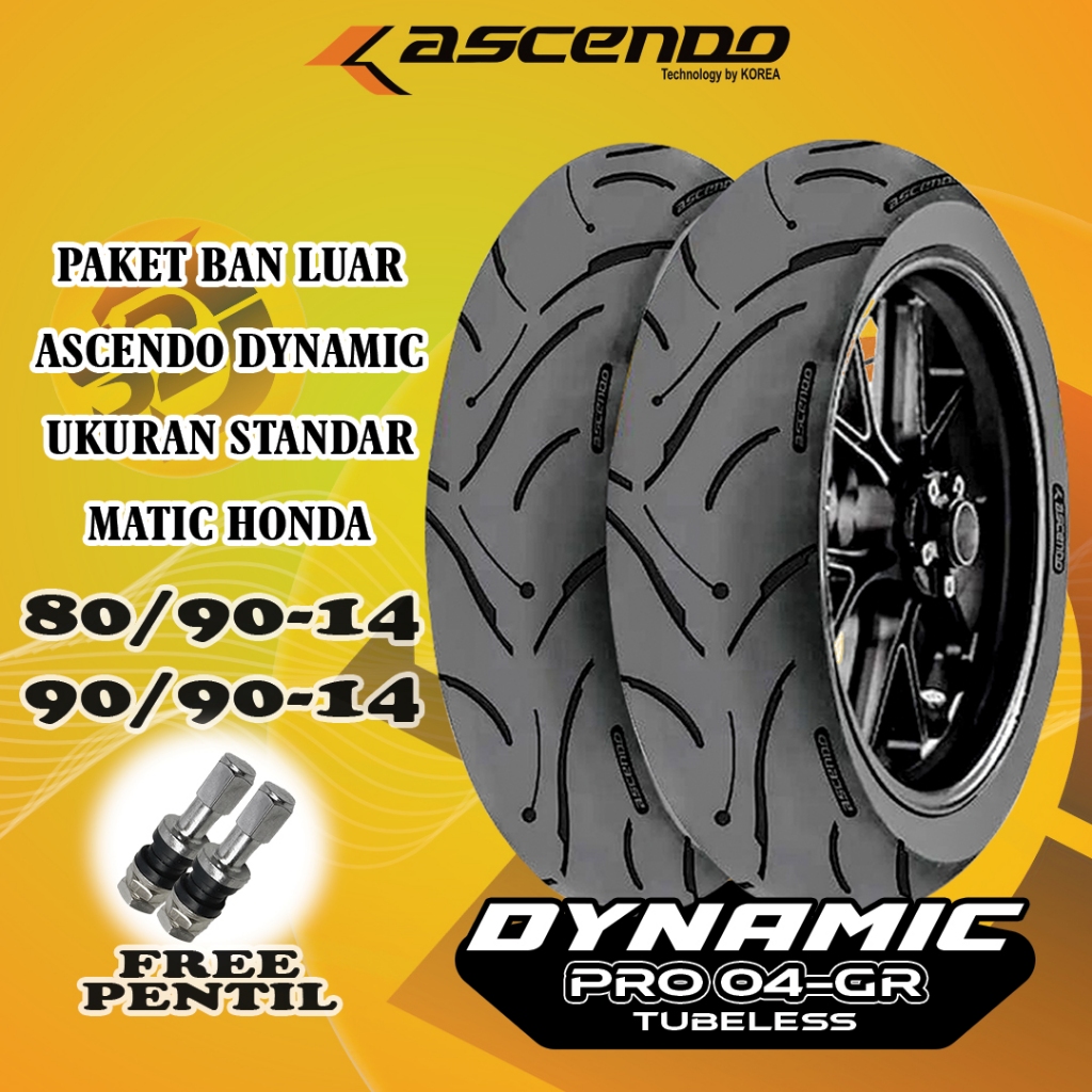 Paket Ban Luar Matic Sepasang Ukuran Standar Beat Scoopy Vario 80/90-14 & 90/90-14 Ascendo Dynamic Tubeless Free Pentil