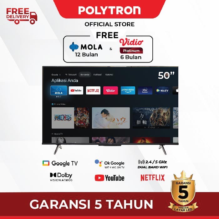 Led Tv Polytron Smart Google Tv 50 Inch Pld 50Ug5959 4K Uhd Kurir Toko Khusus Bogor