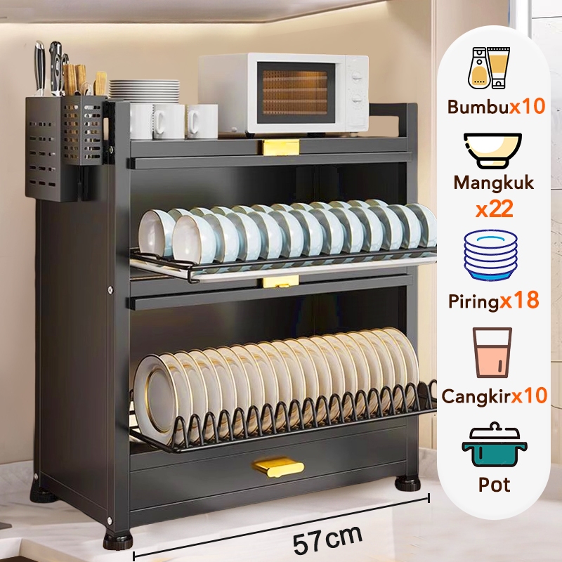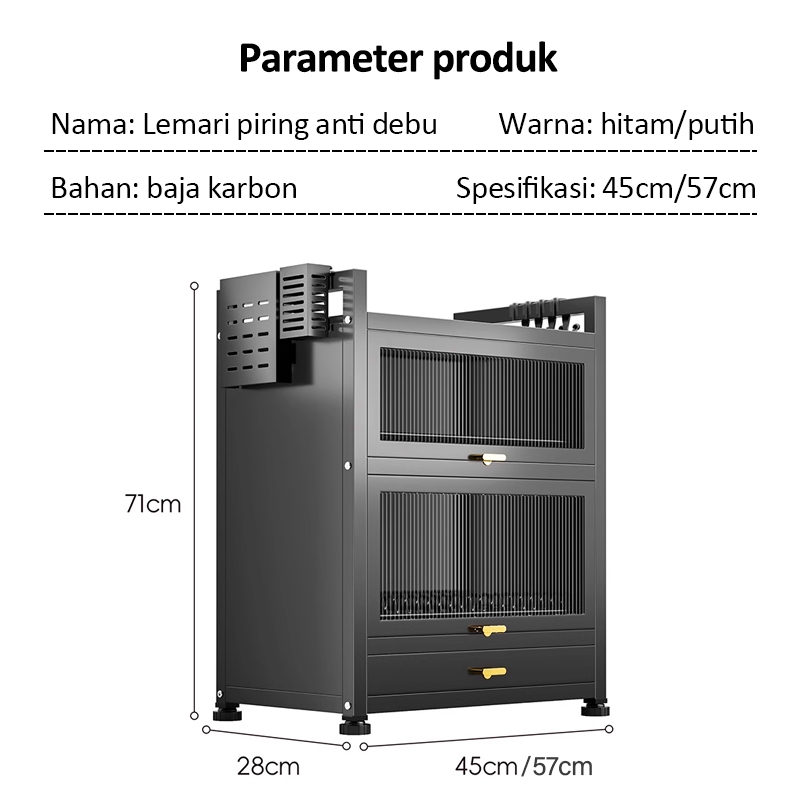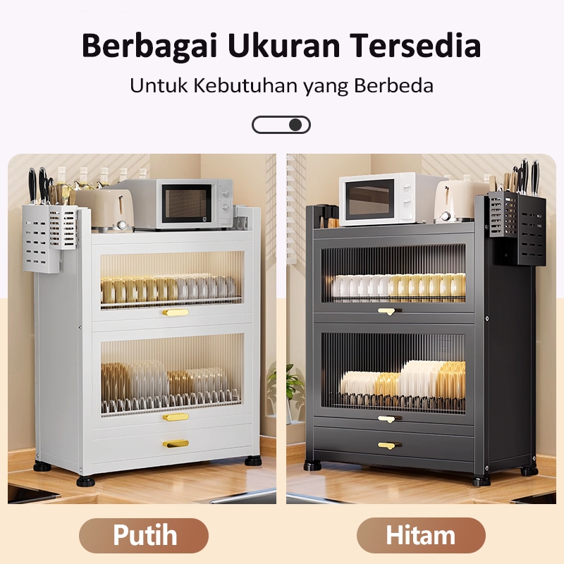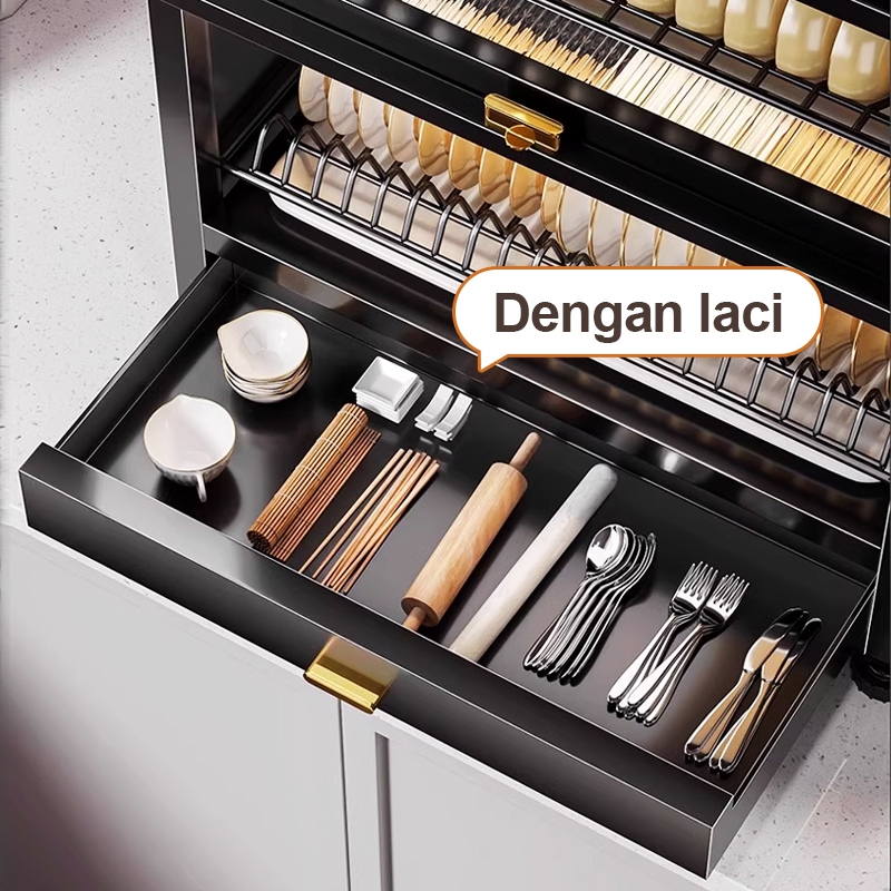 Ispecle 2/3 Susun Rak Piring Tertutup Anti Debu Rak Lemari Piring Dengan Laci Rak Dapur Serbaguna