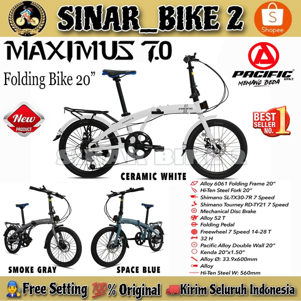 Sepeda Lipat Maximus 7.0 By Pacific 7 Speed // Pacific Noris Cx 8 Speed Alloy Ukuran 20 Inch Boncengan