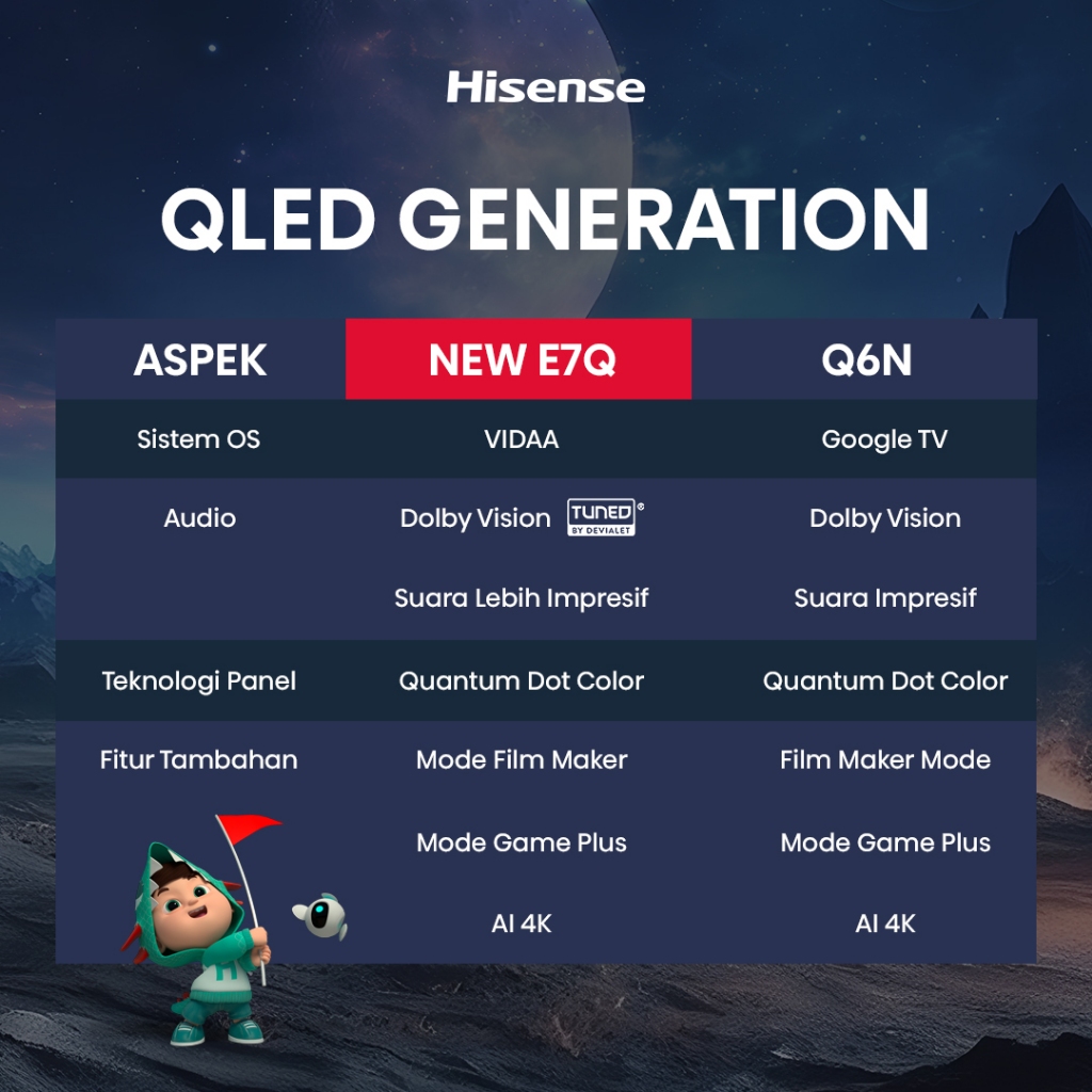 Hisense Tv 50E7Q Vidaa Smart Digital Qled Tv 50 Inch Filmmaker Mode Quantum Dot Colour Dolby Vision & Atmos Mode Game Pl