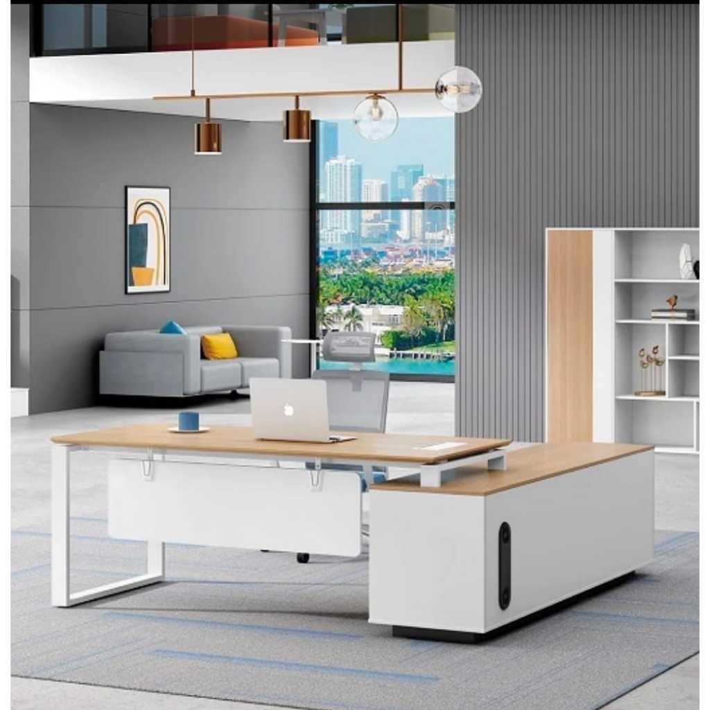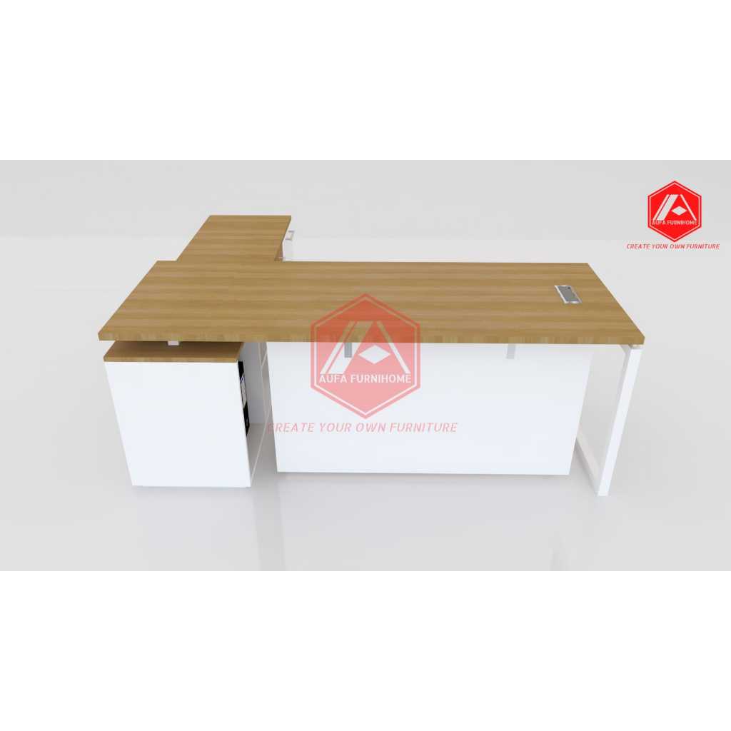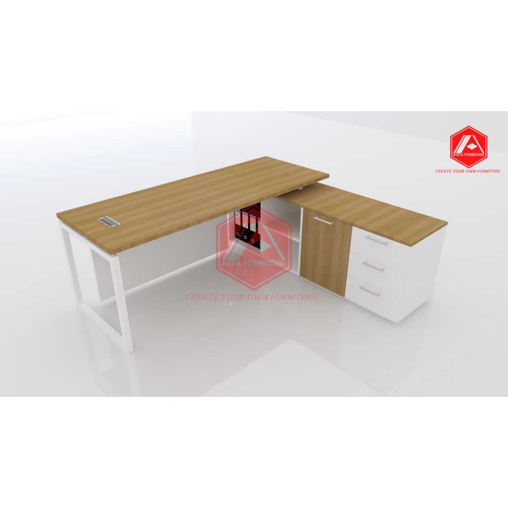 Meja Direktur Model L Dengan Laci Kaki Besi Custom Hpl Multiplek /Custom R Kantor Kerja Office Custom
