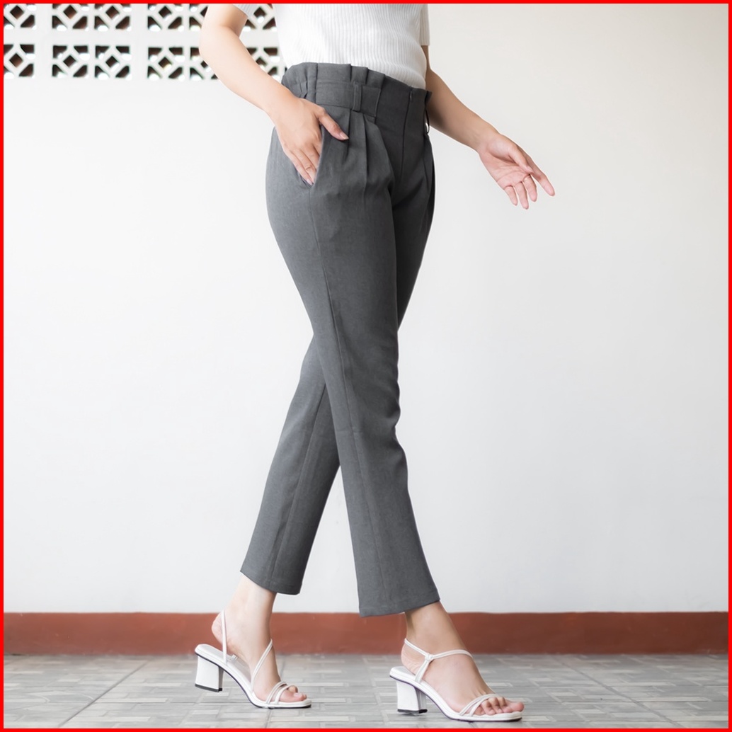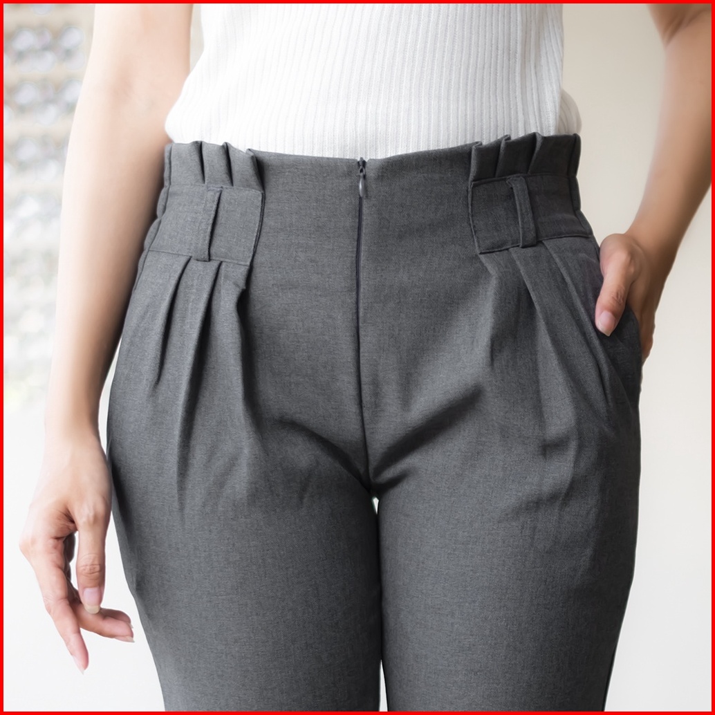 Haymeeidn - Celana Kantor Highwaist Pinggang Rempel Sleting Depan