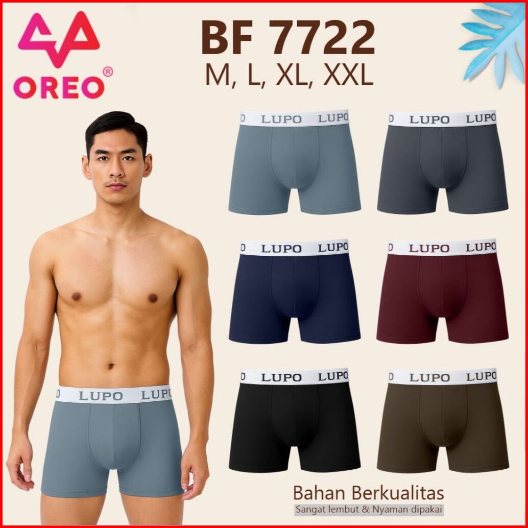 Lupo 3pcs Bf-7722 Celana Dalam Boxer Laki-laki Pria Dewasa Katun Bamboo Premium Logo Timbul Adem Nyaman Halus