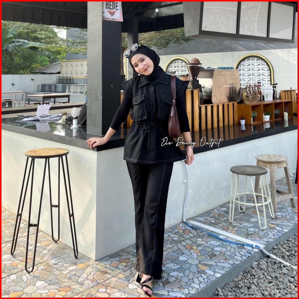 A Wear - Ghea Top Outer Tangan Pendek Pocket Shirt Semiwoll
