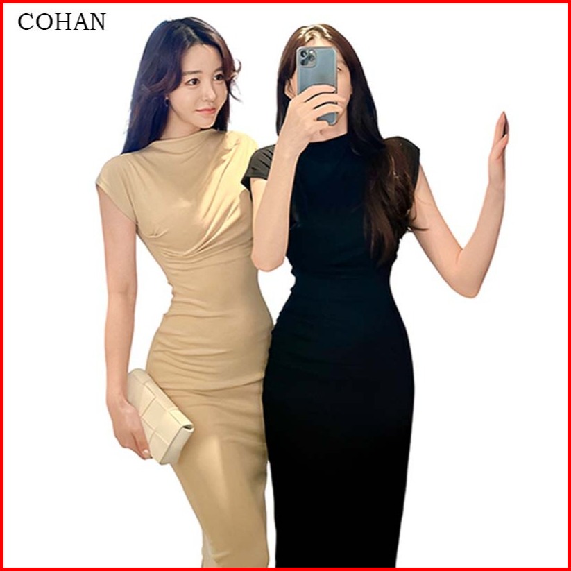 Cohan Dr255 Gaun Panjang Pesta Tanpa Lengan Polos Bodycon Long Cream S M L Xl