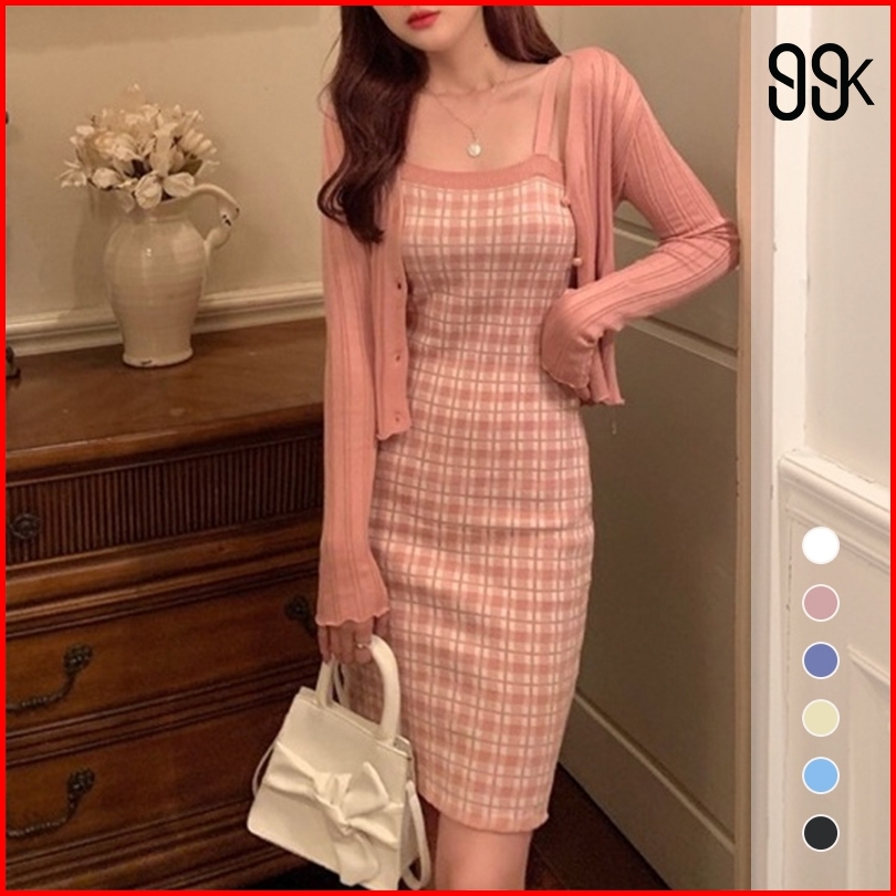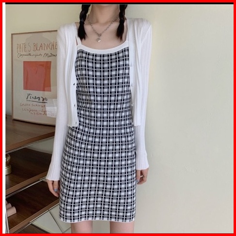 Bodycon Plaid Knitted Mini Dress Without Cardigan 2178